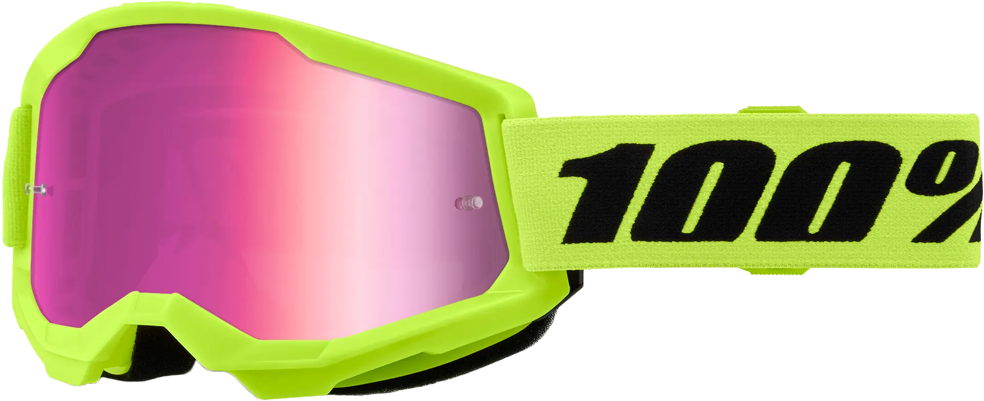 100% Strata 2 Goggle Neon Yellow Mirror Pink Lens