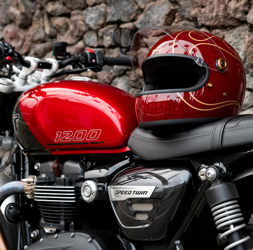 Biltwell Gringo S Helmet - Gloss Garnet Red Flames