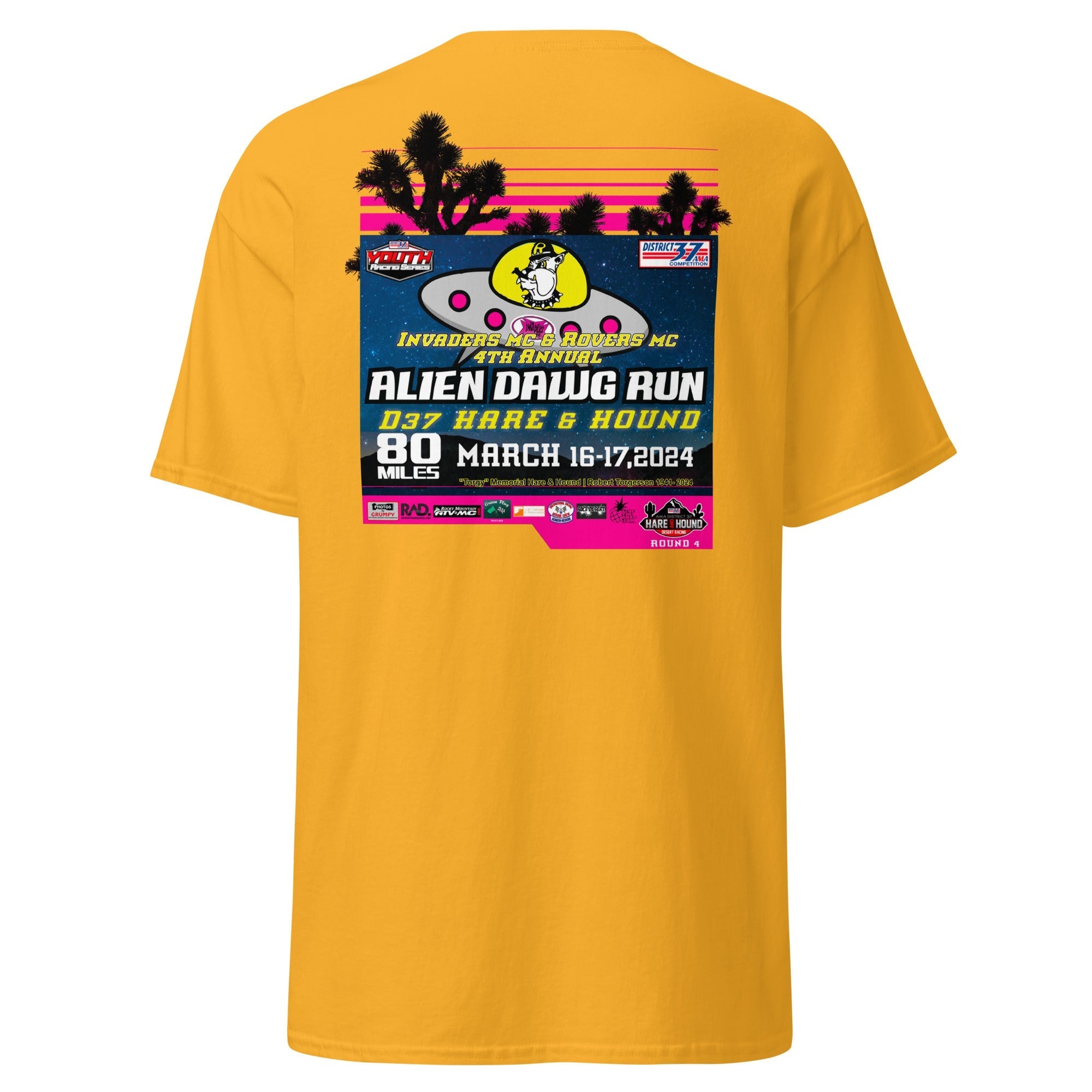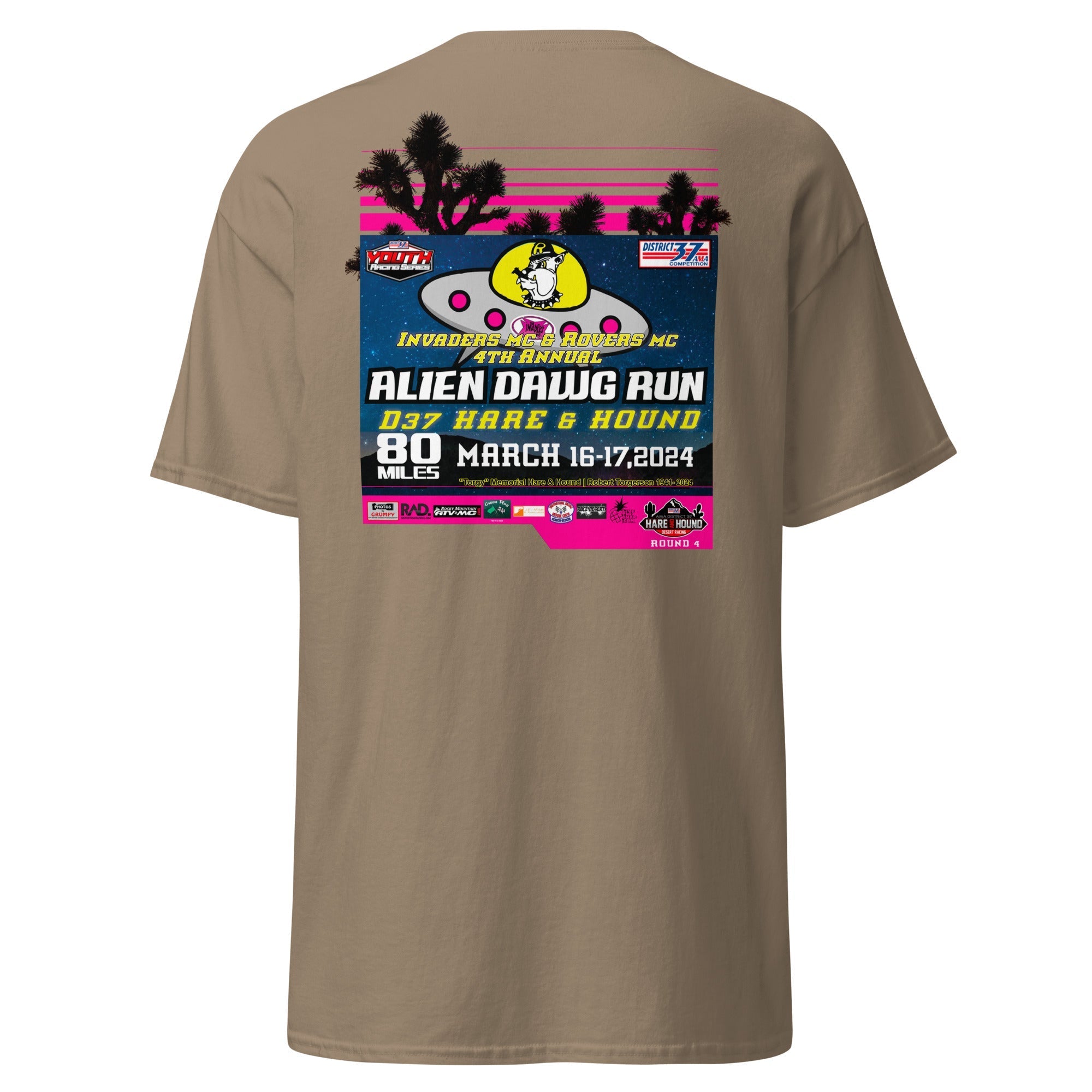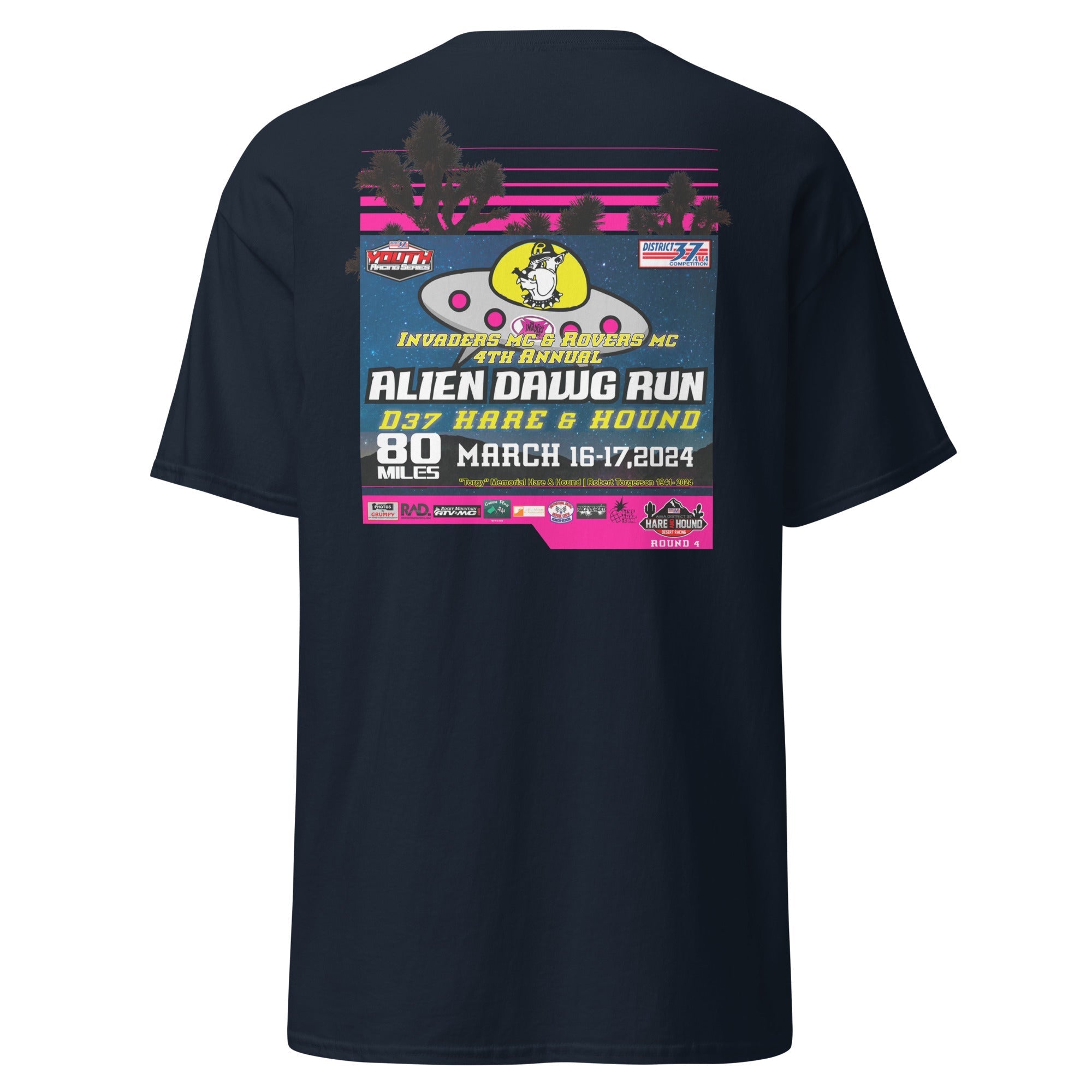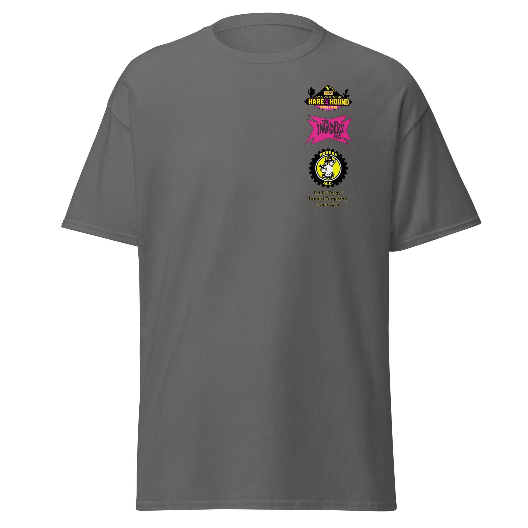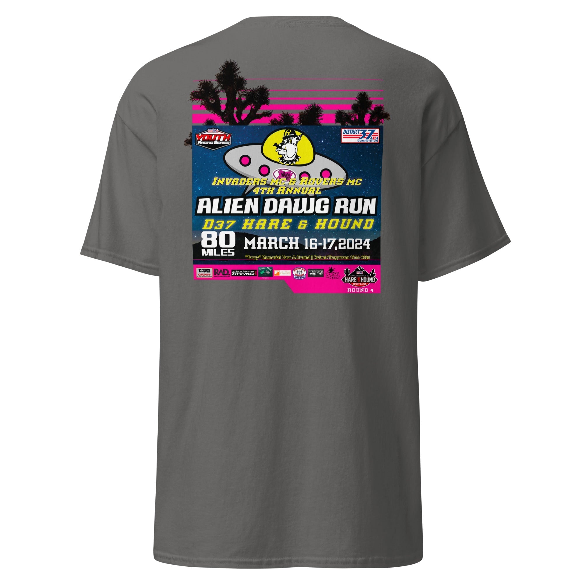 Official event apparel of the 2024 Alien Dawg Run - Rovers MC & Invaders MC Hare & Hound. "Torgy" Memorial Hare & Hound | Robert Torgerson 1941- 2024