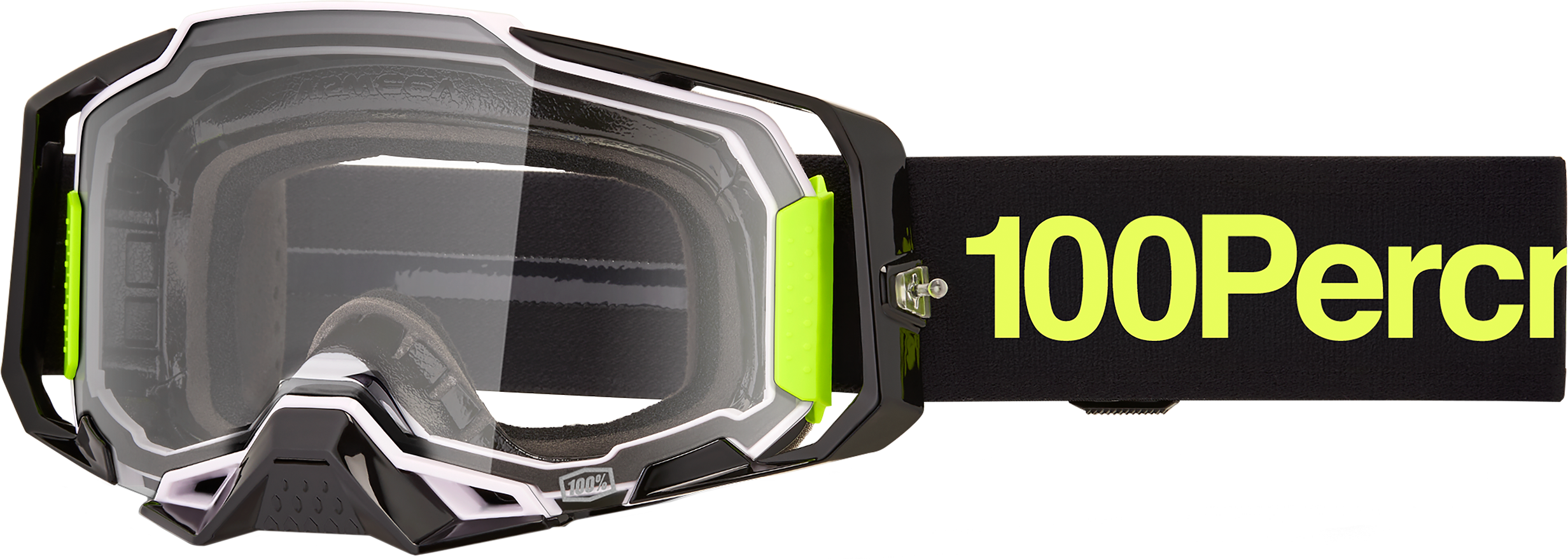The ARMEGA offers premium technology through an injection-molded, shatterproof lens that boasts an enhanced field of vision and impact protection. The 6-point locking-tab integration secures the lens and works in unison with a quick-change system enabling you to switch between lenses with a couple of simple clicks. A bonded, dual-injected frame incorporates a next generation sweat management system that collects sweat as your ride intensifies and forces it away from the lens and out of the goggle through an integrated channel in the frame. Force air intakes in the frame promote increased airflow to ensure fog-free vision, despite heated efforts overcoming sub-par competition. Want a goggle designed to give it 100% deep in the battlegrounds of motocross? Look no further than the ARMEGA