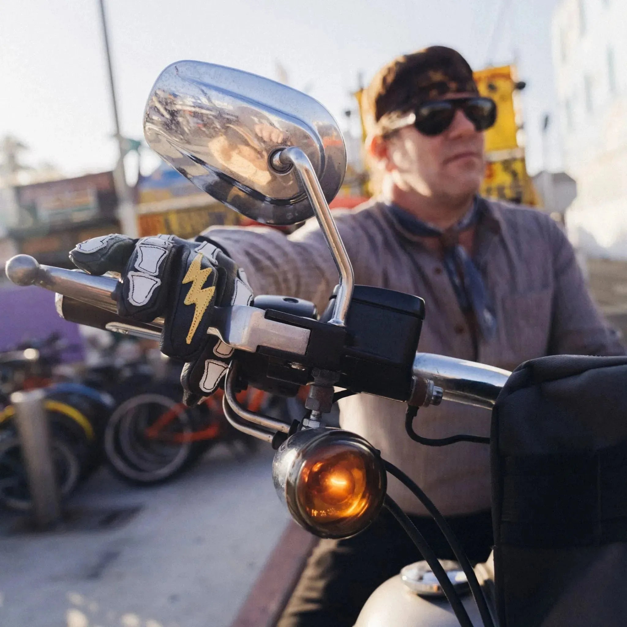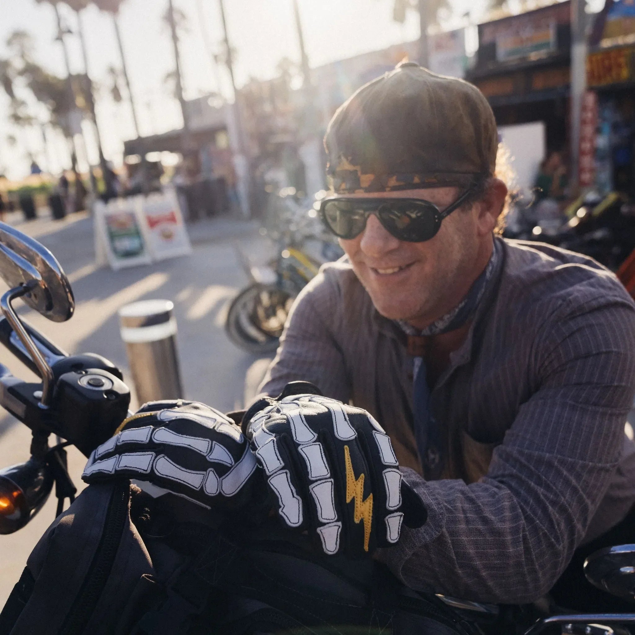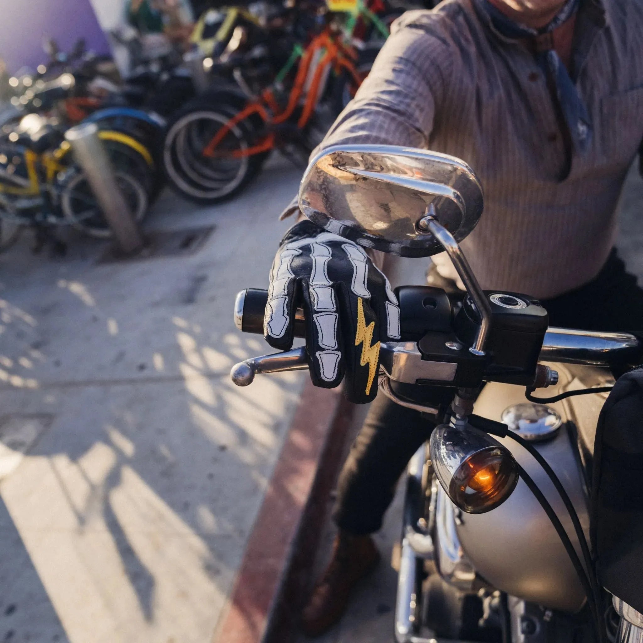 Astrapí (Lightning) Skeleton Leather Motorcycle Glove - Black-White