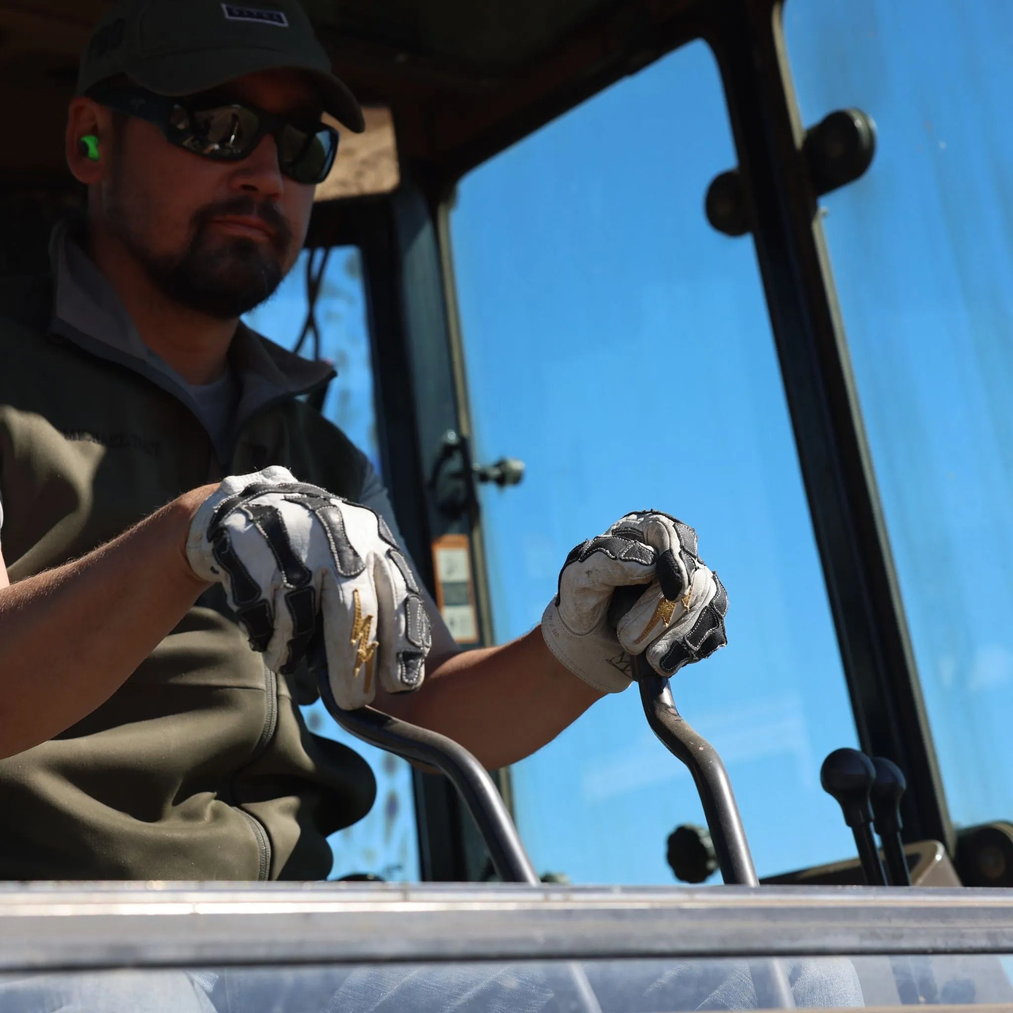 The White Skeleton Astrapi is more than just a glove – it's a testament to style, durability, and technology. Crafted from full grain Water Buffalo hide, it embodies PURE STRENGTH, with its natural fiber structure and durability. The glove conforms to your hand, ensuring optimum COMFORT and DEXTERITY. It features a gold lightning bolt, hand-stitched with 40 pieces of buffalo leather, signifying the powerful astrapi (lightning in Greek). The tech fabric on the index finger gives you seamless SMARTPHONE ACCESSIBILITY. The glove's affinity for water and its superior resistance to tears, punctures, and abrasions make it your ultimate hand protection.
