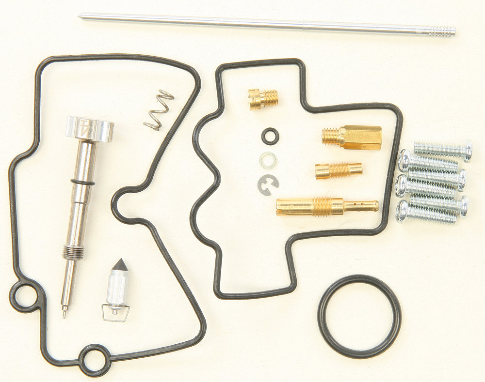 - Kit includes all O-rings, gaskets, jets, needle, mixture screw, float bowl screws, float valve needle and seat.