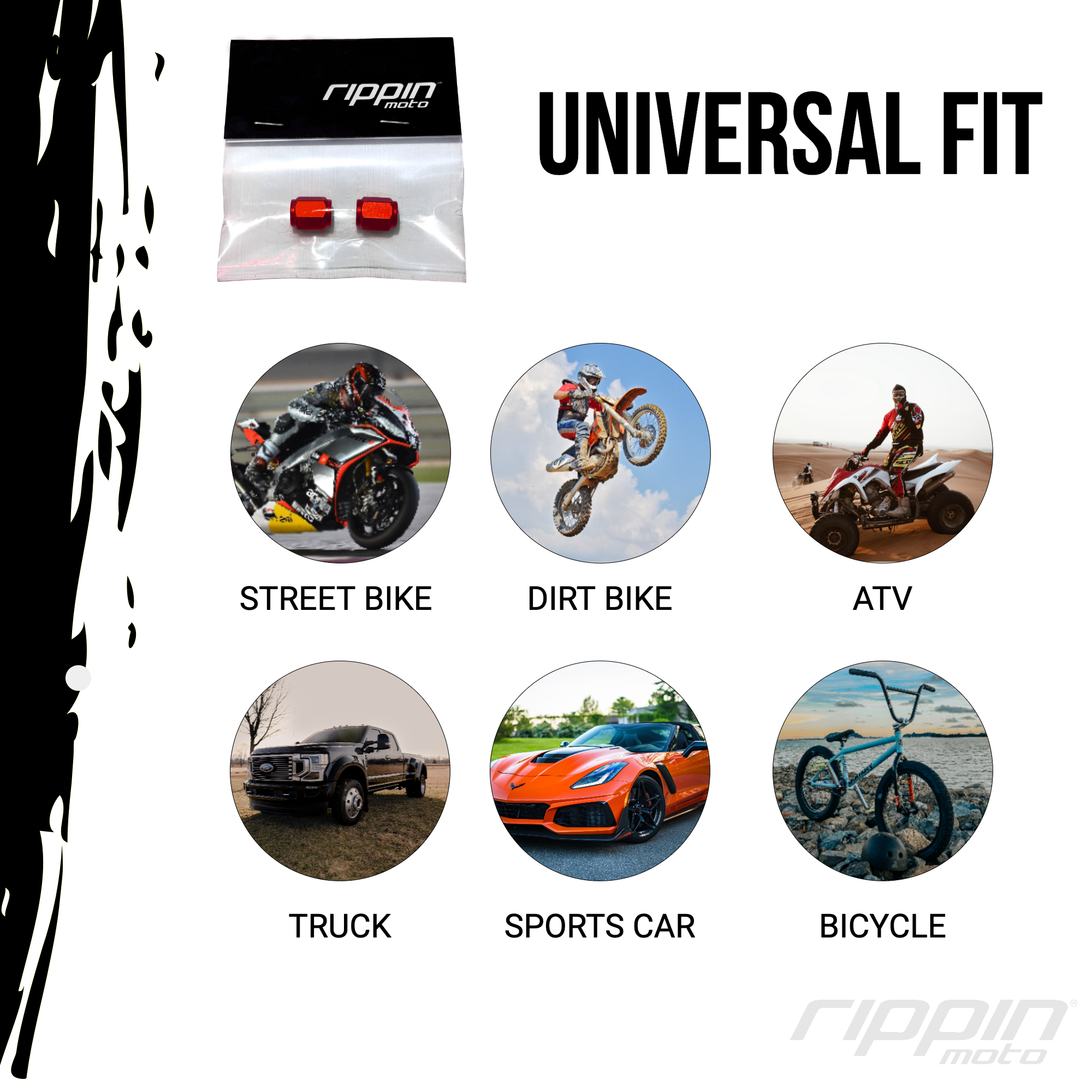 Designed for a universal fit, these Rippin Moto Valve Stem Caps easily screw onto all Schrader-style valves, making them suitable for motorcycles, cars, ATVs, trucks, and more. With their perfect fit and lightweight 10g construction, they’re a seamless upgrade that enhances both appearance and performance. Installation is simple, and for extra longevity, applying a touch of anti-seize compound prevents corrosion, ensuring your valve stem caps stay securely in place for years to come.