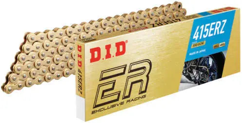High-performance, lightweight low-friction chain designed to meet the performance needs of Moto3 racing. ERZ chain is upgraded with exclusive Super Dai Hard pins put through a special patented heat-treatment process that makes them 1.5x harder than conventional carbon heat treating. Twice the wear-resistance of original D.I.D. 415 ER chains, and the 4,540 lbs. average tensile strength is a 15% increase.