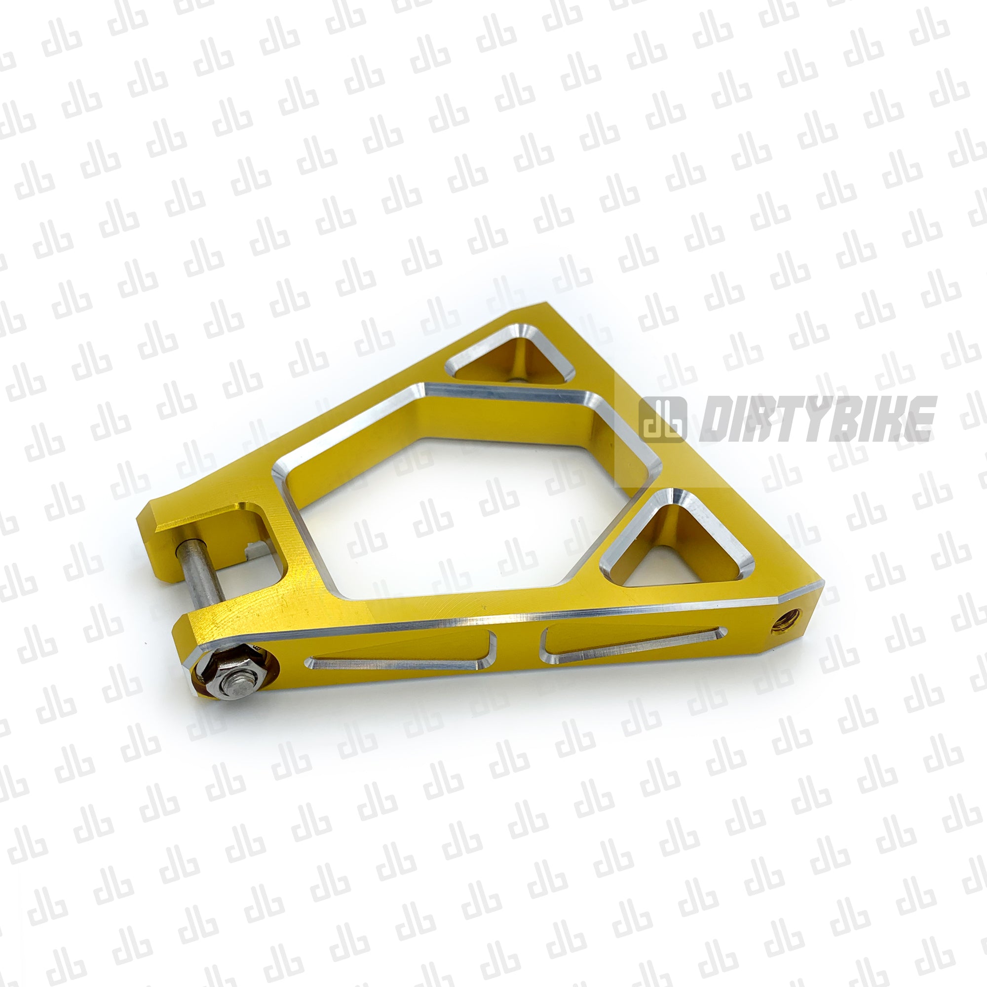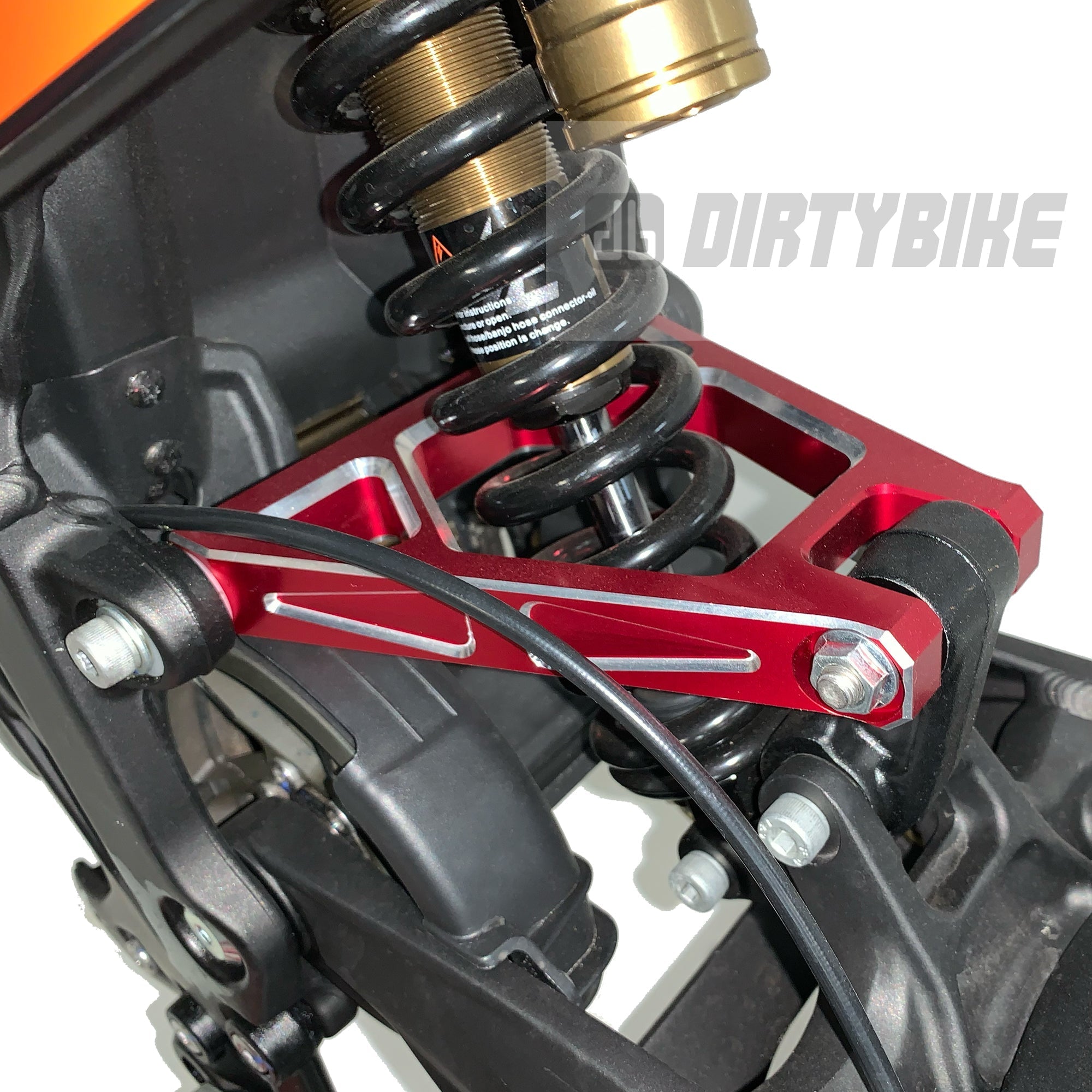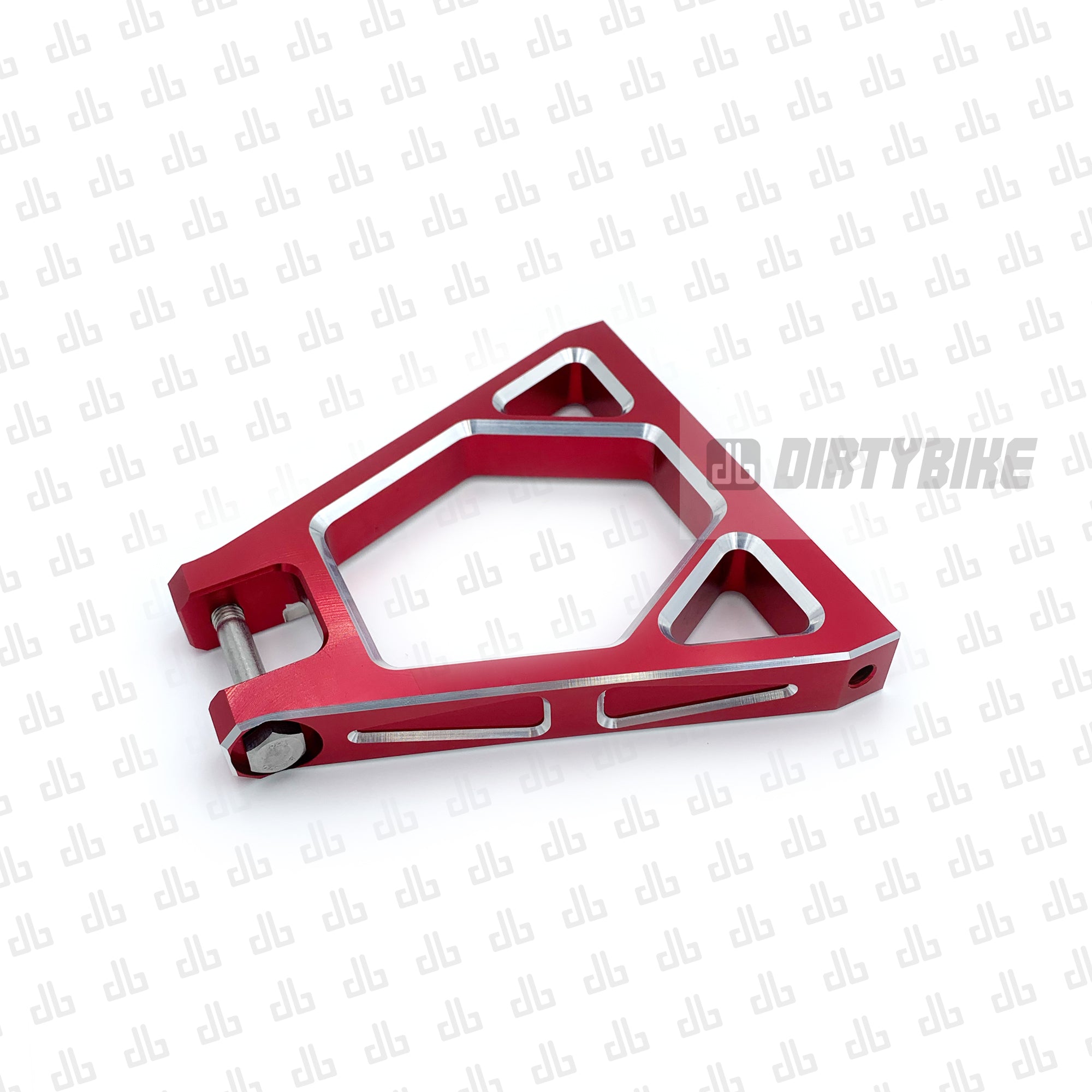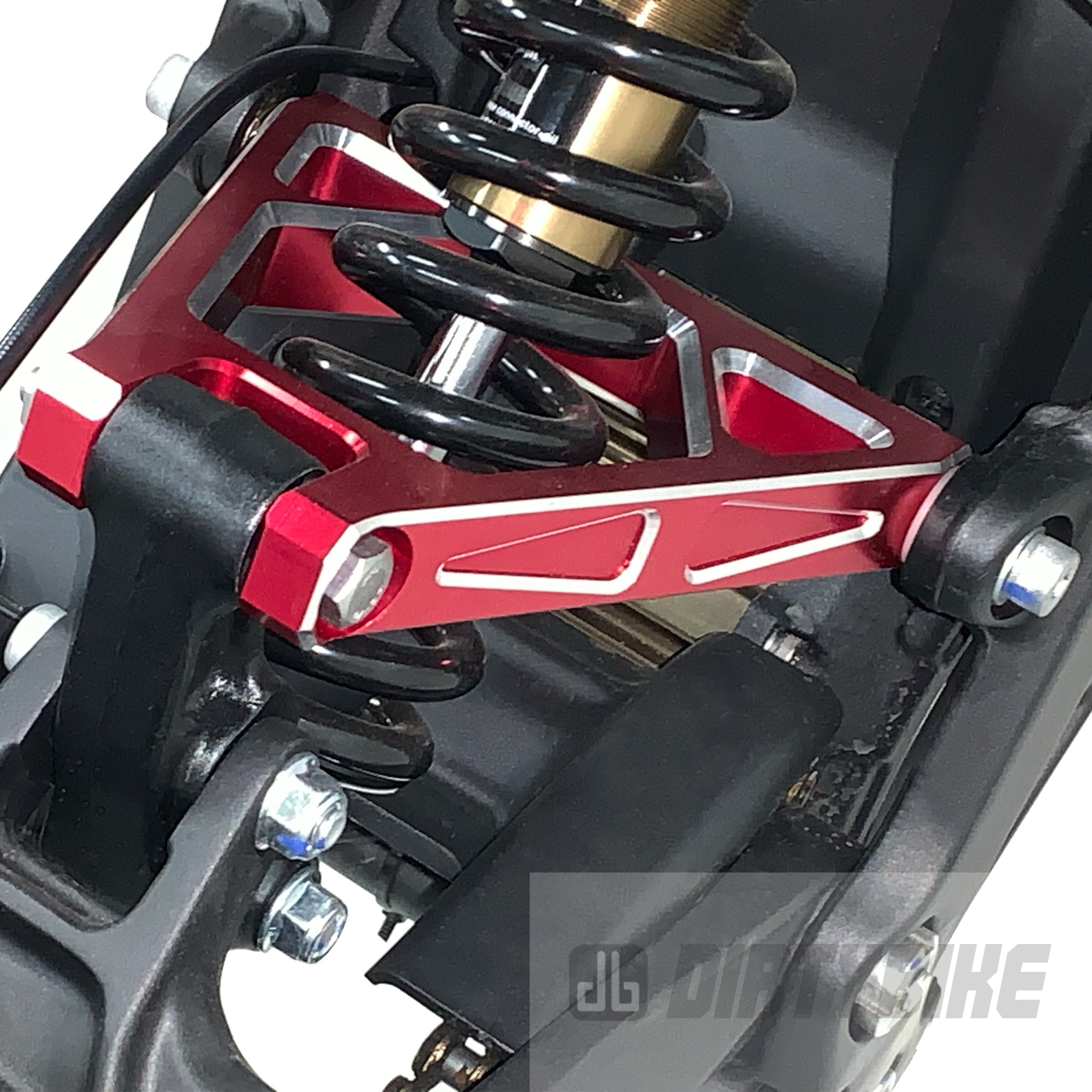 DirtyBike's CNC aluminum rear suspension reinforced progression triangle.