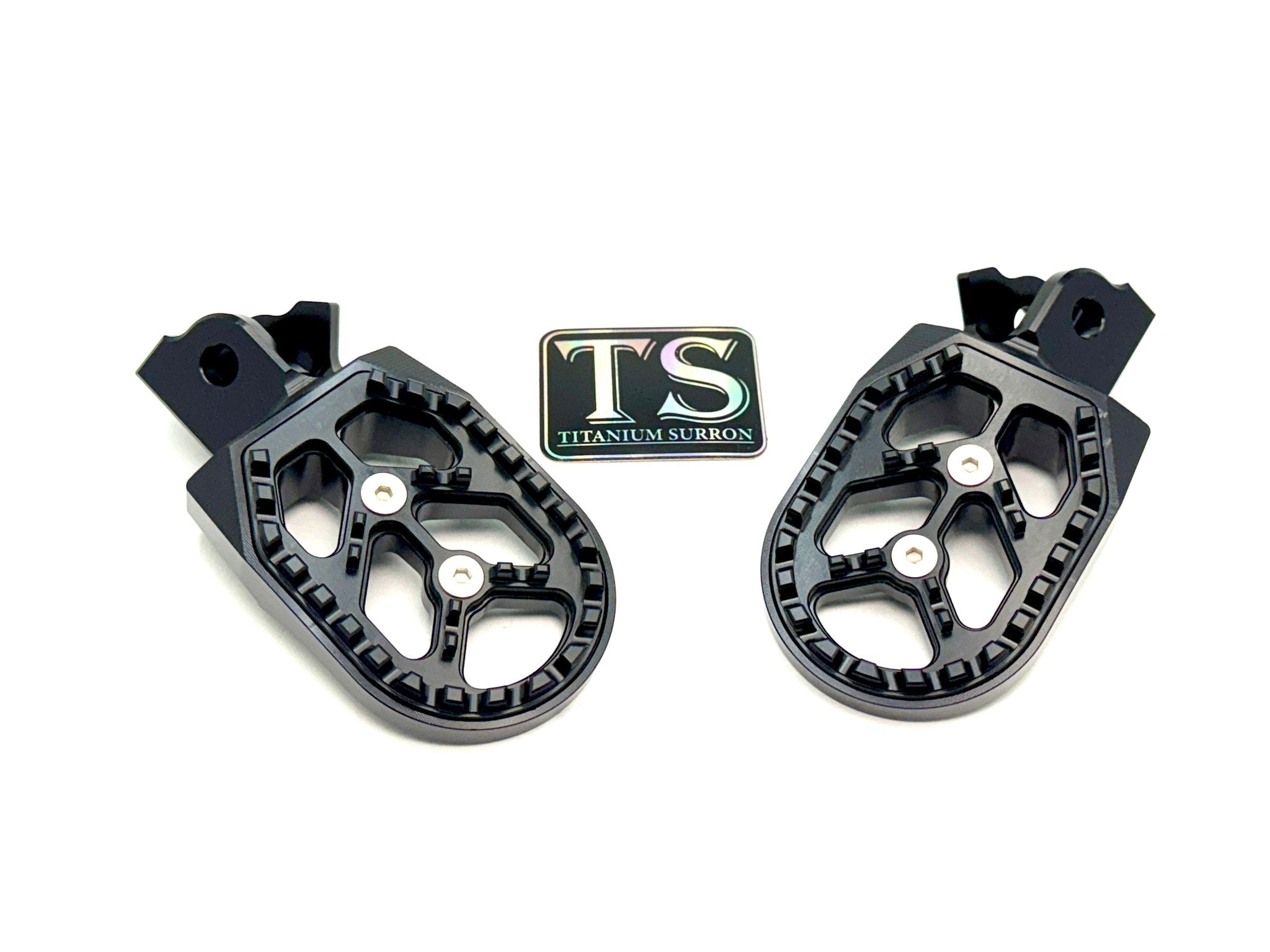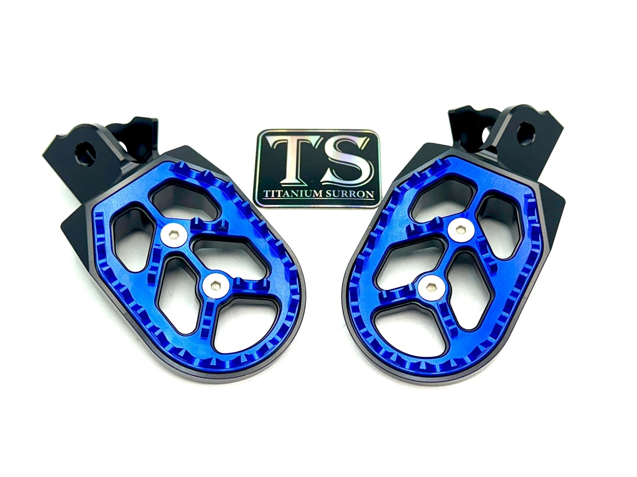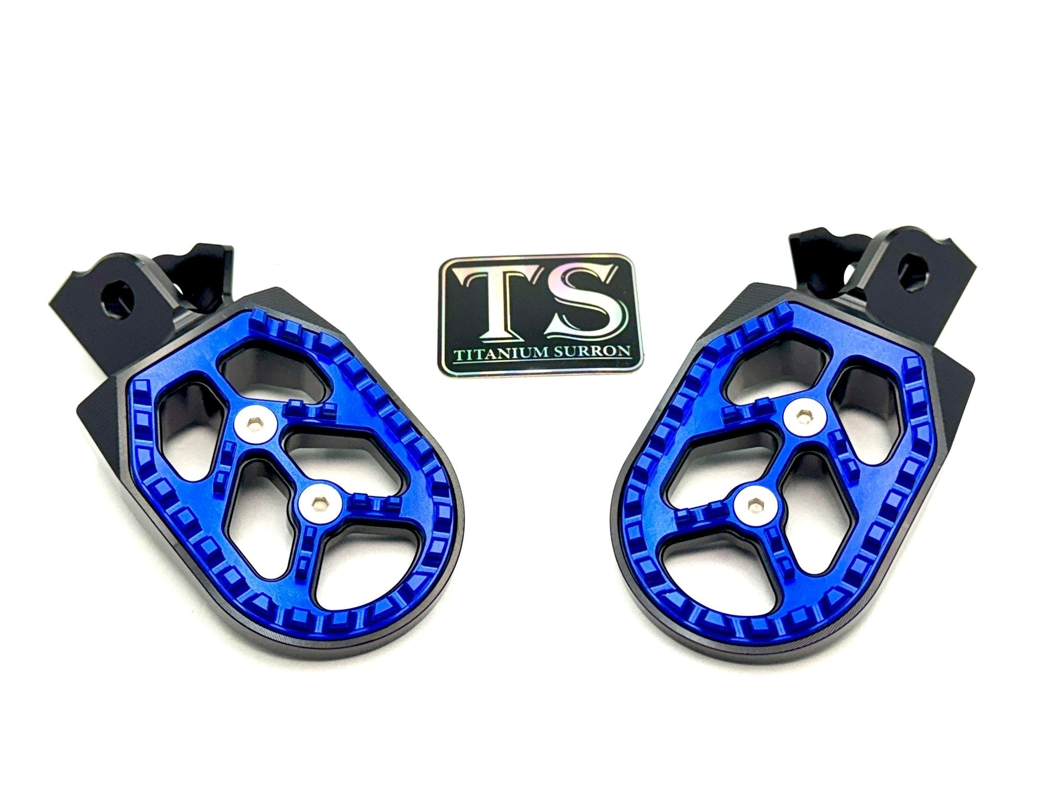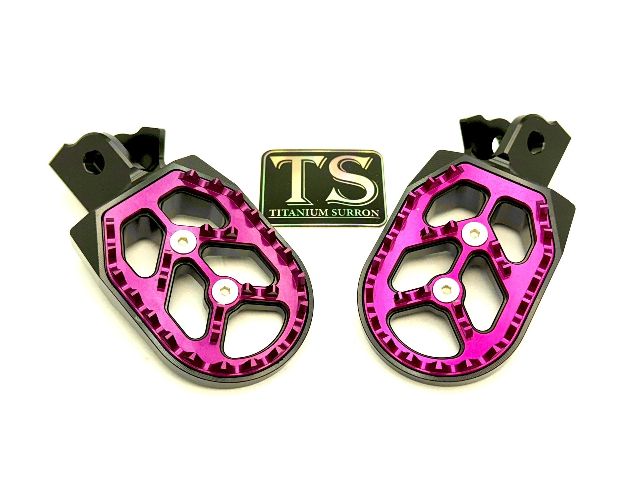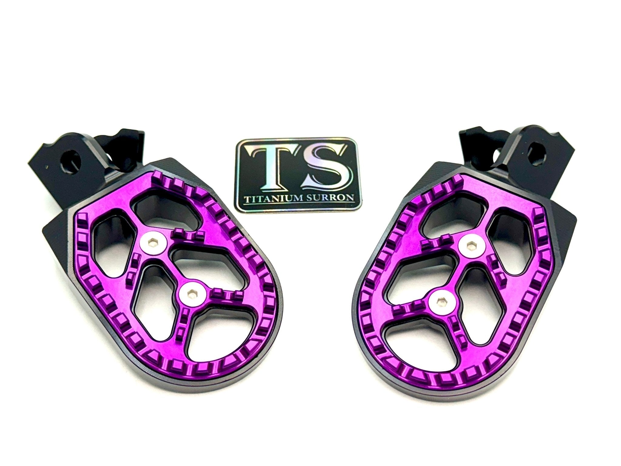 Custom foot pegs for the Surron, Segway, 79 Bike, E-Ride Pro, and other E-moto style bikes.
