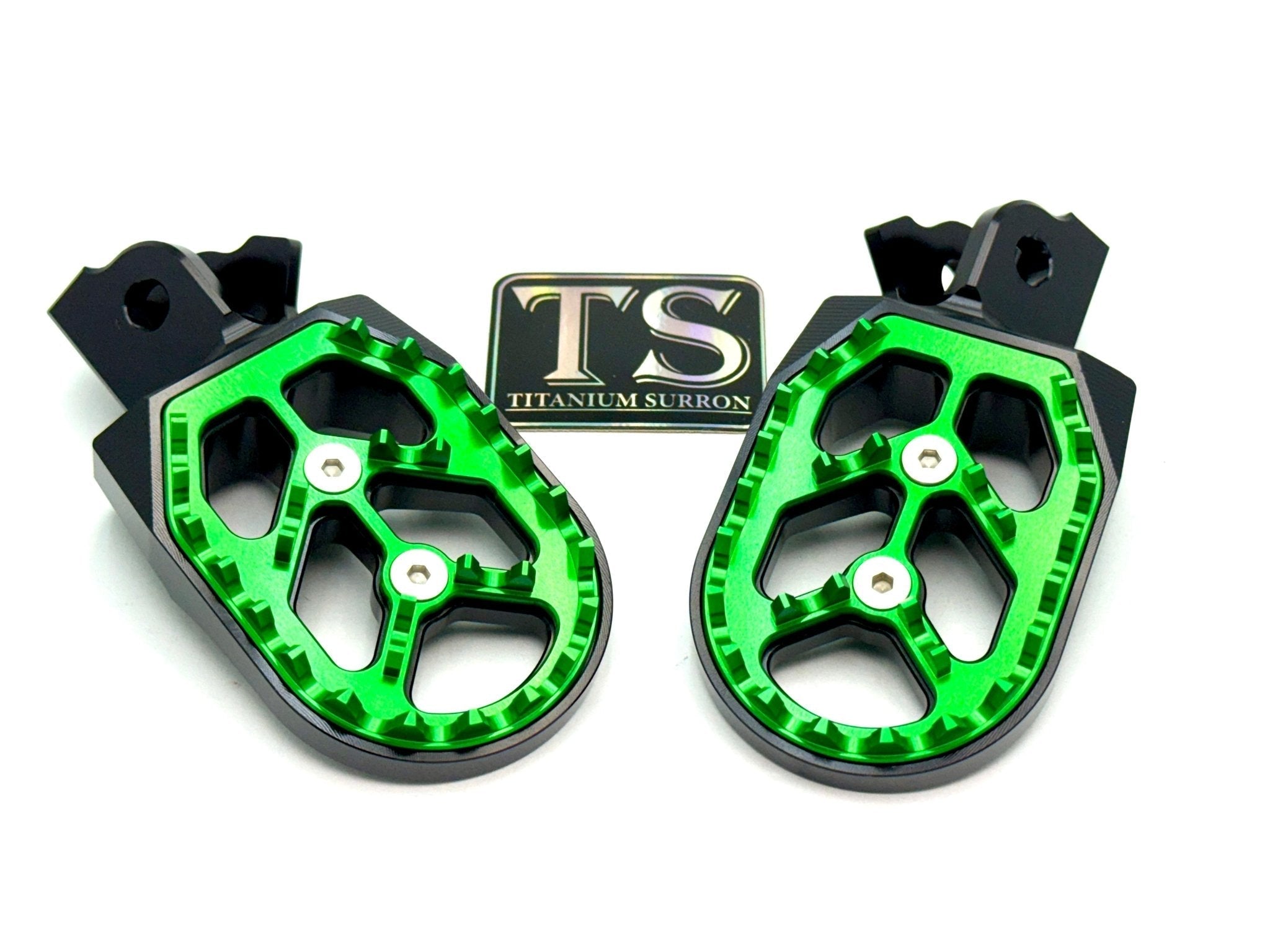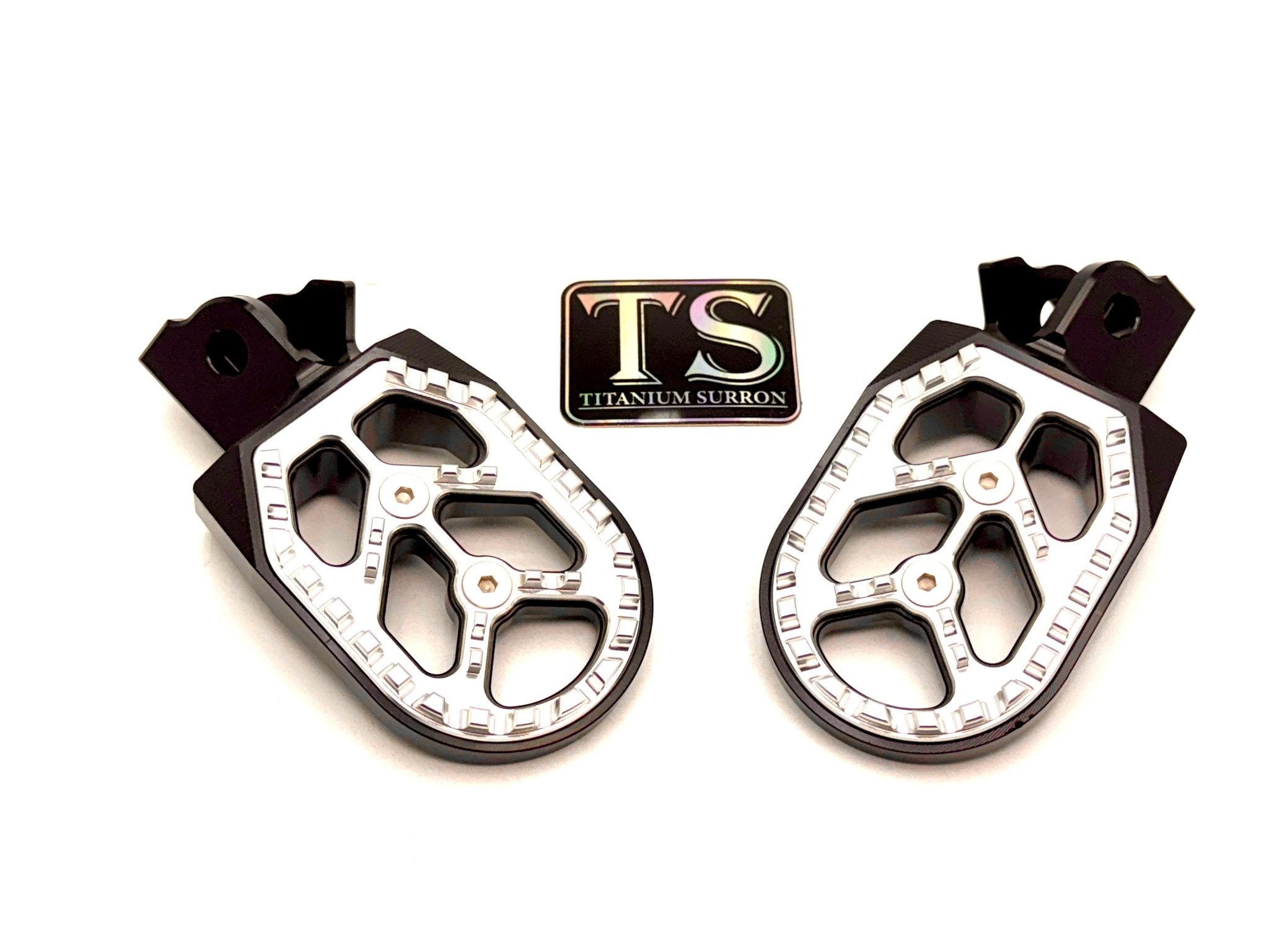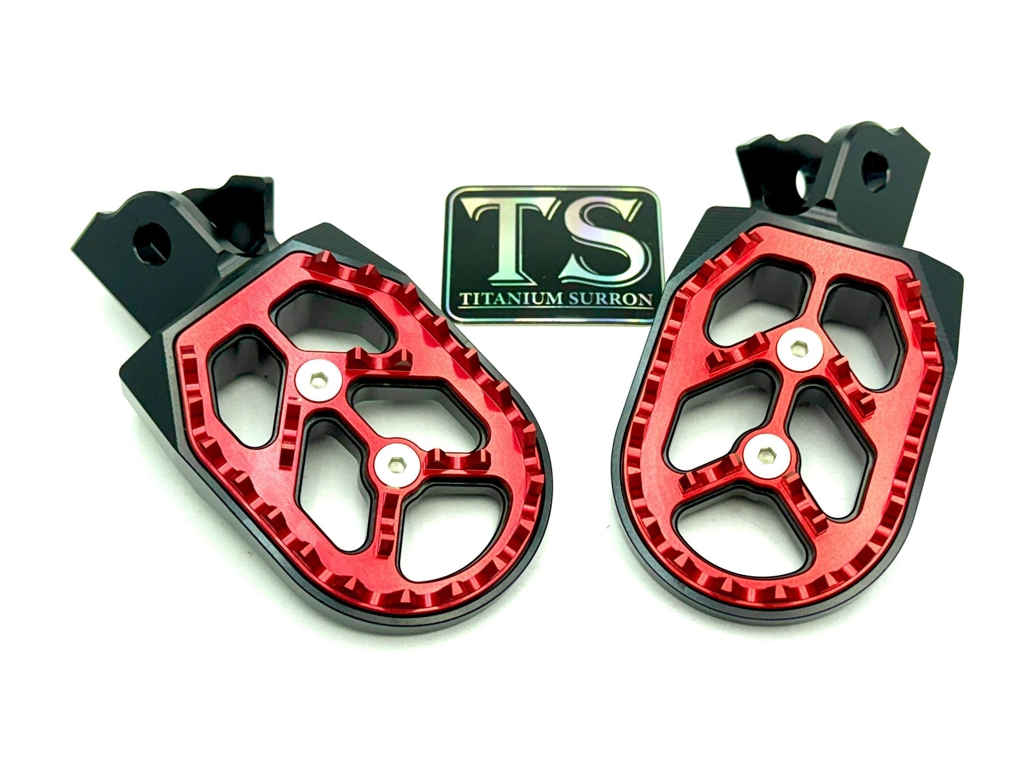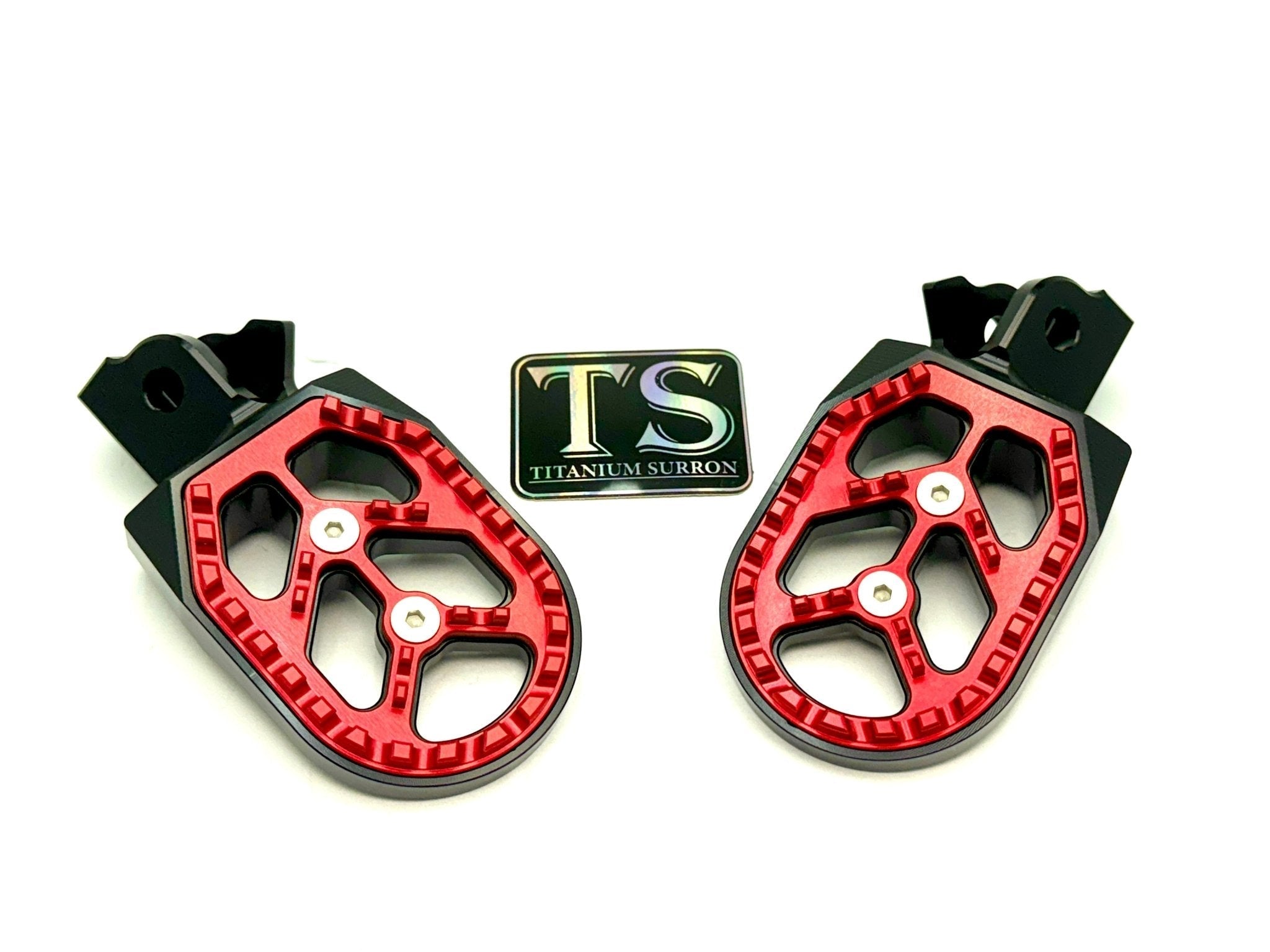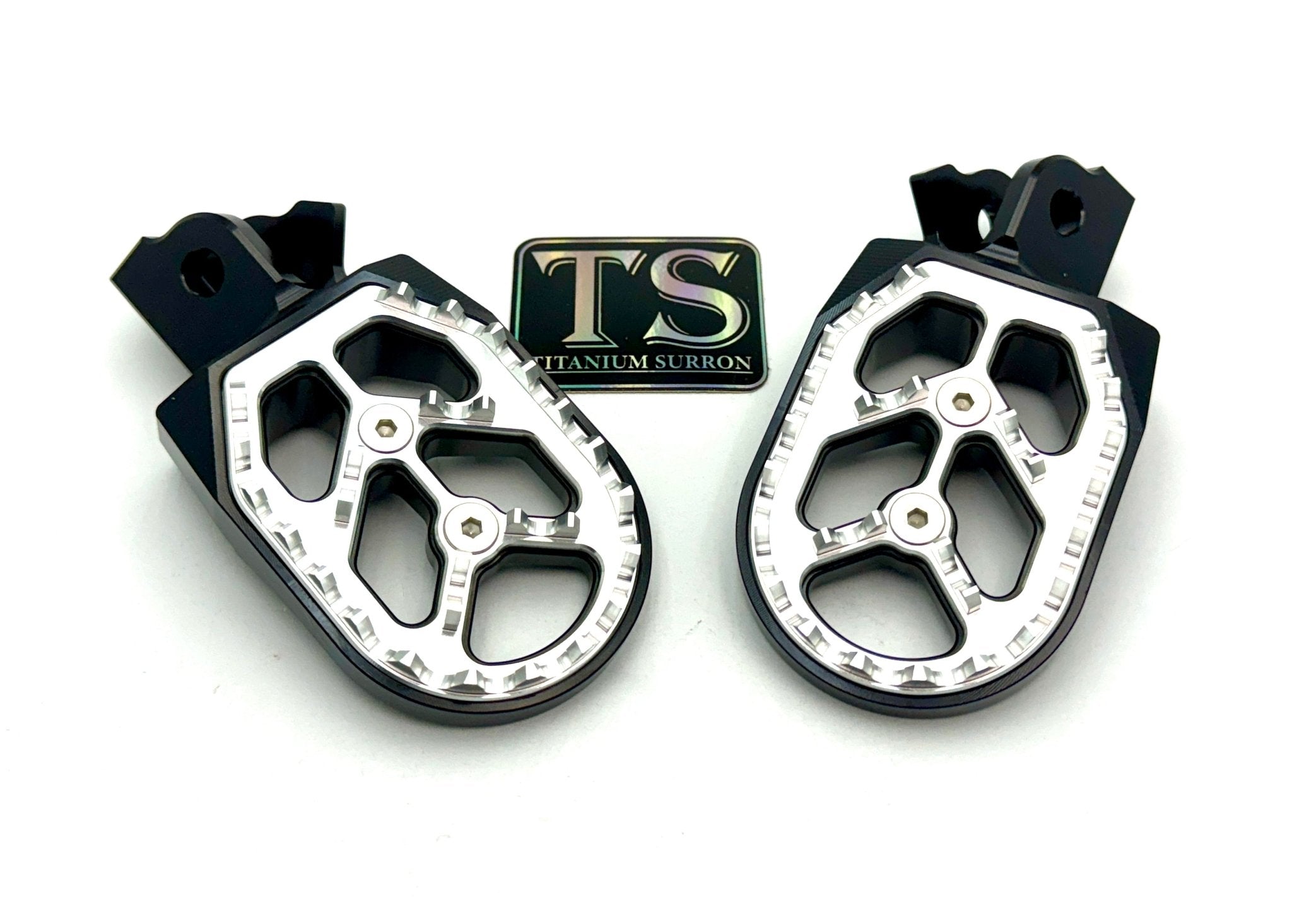Custom foot pegs for the Surron, Segway, 79 Bike, E-Ride Pro, and other E-moto style bikes.