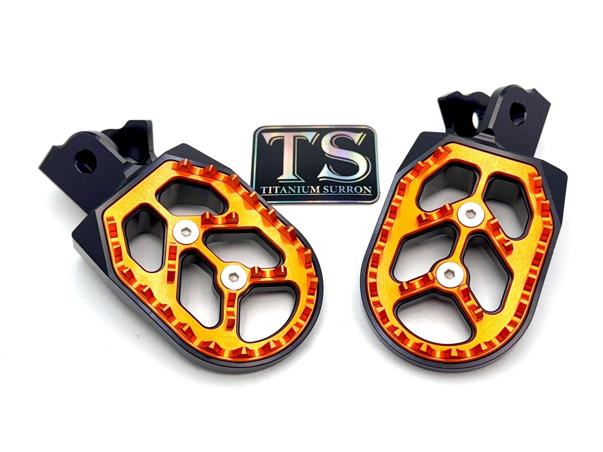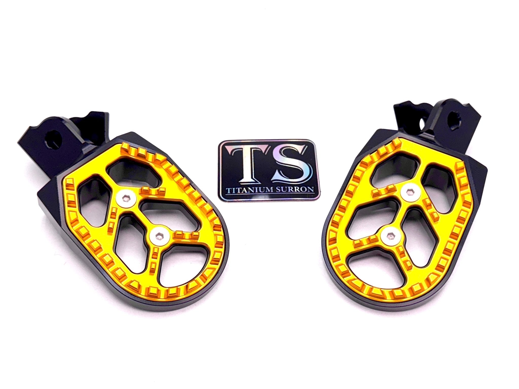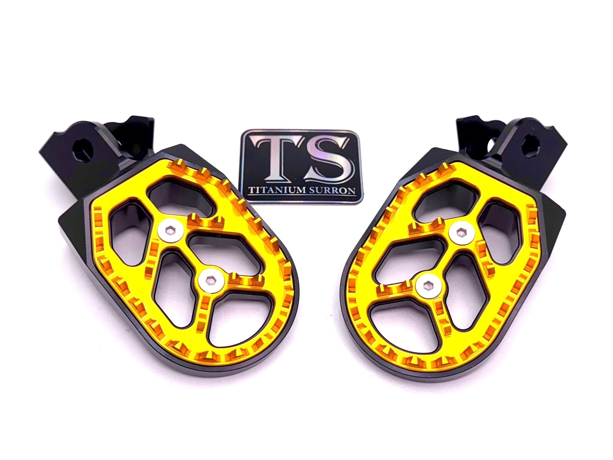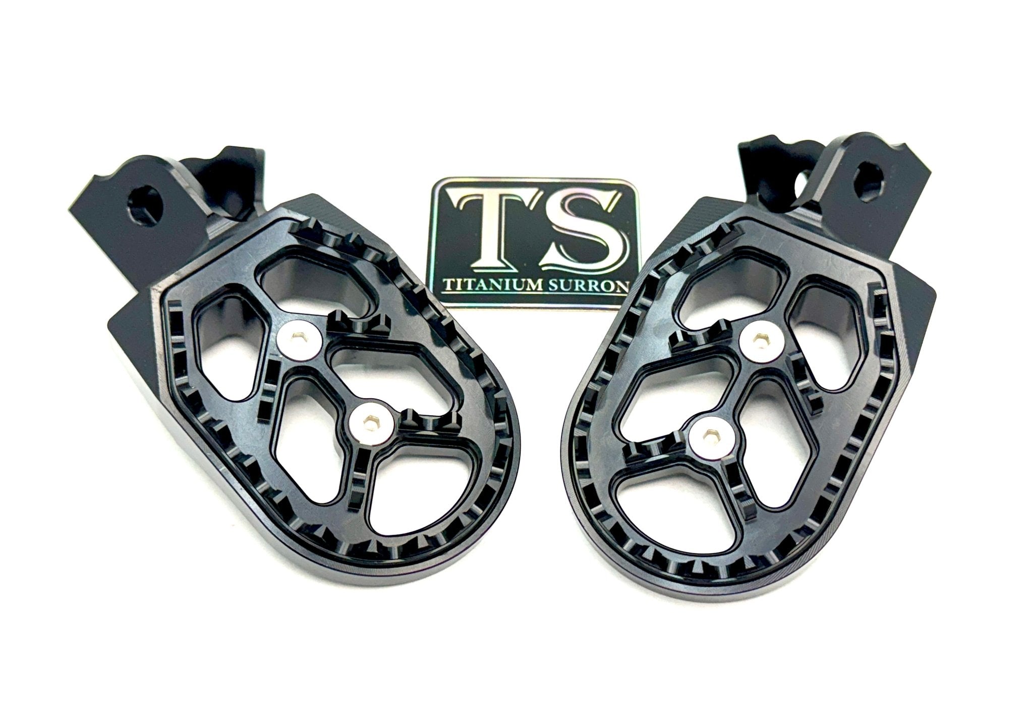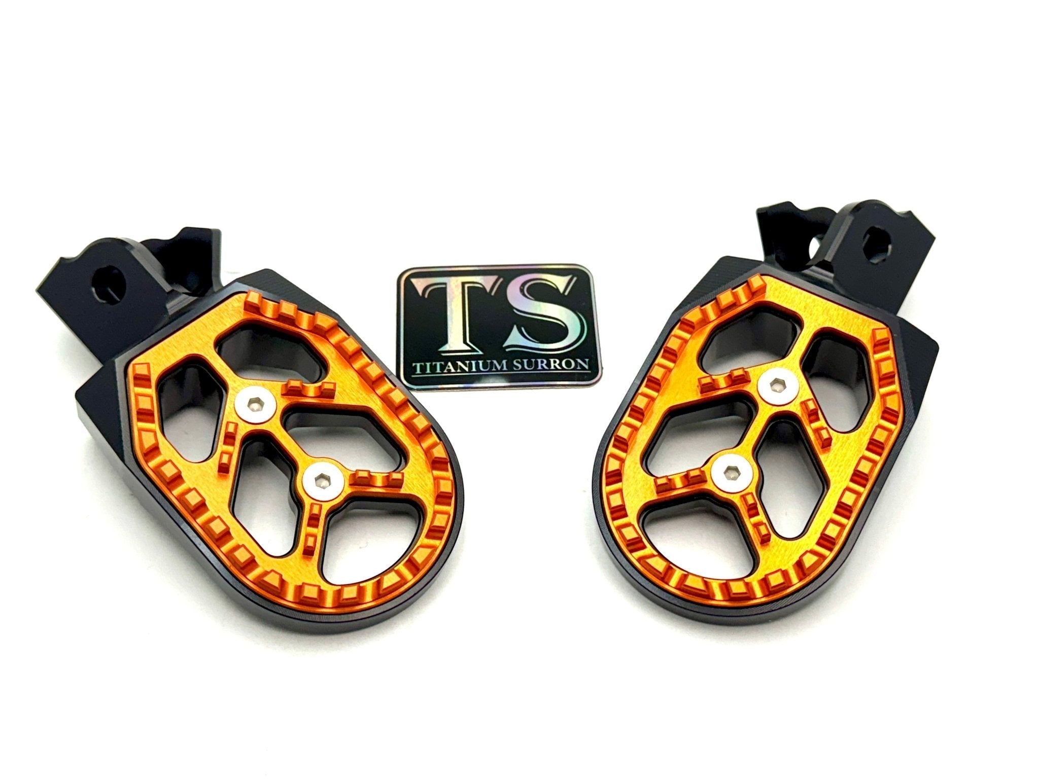 Custom foot pegs for the Surron, Segway, 79 Bike, E-Ride Pro, and other E-moto style bikes.