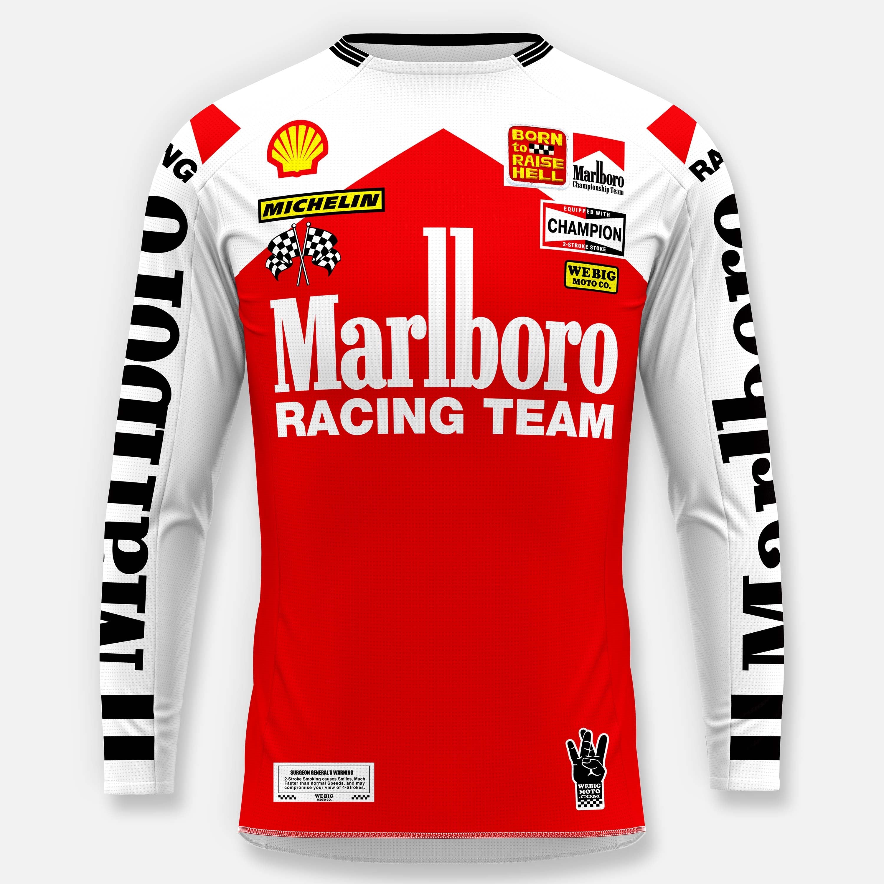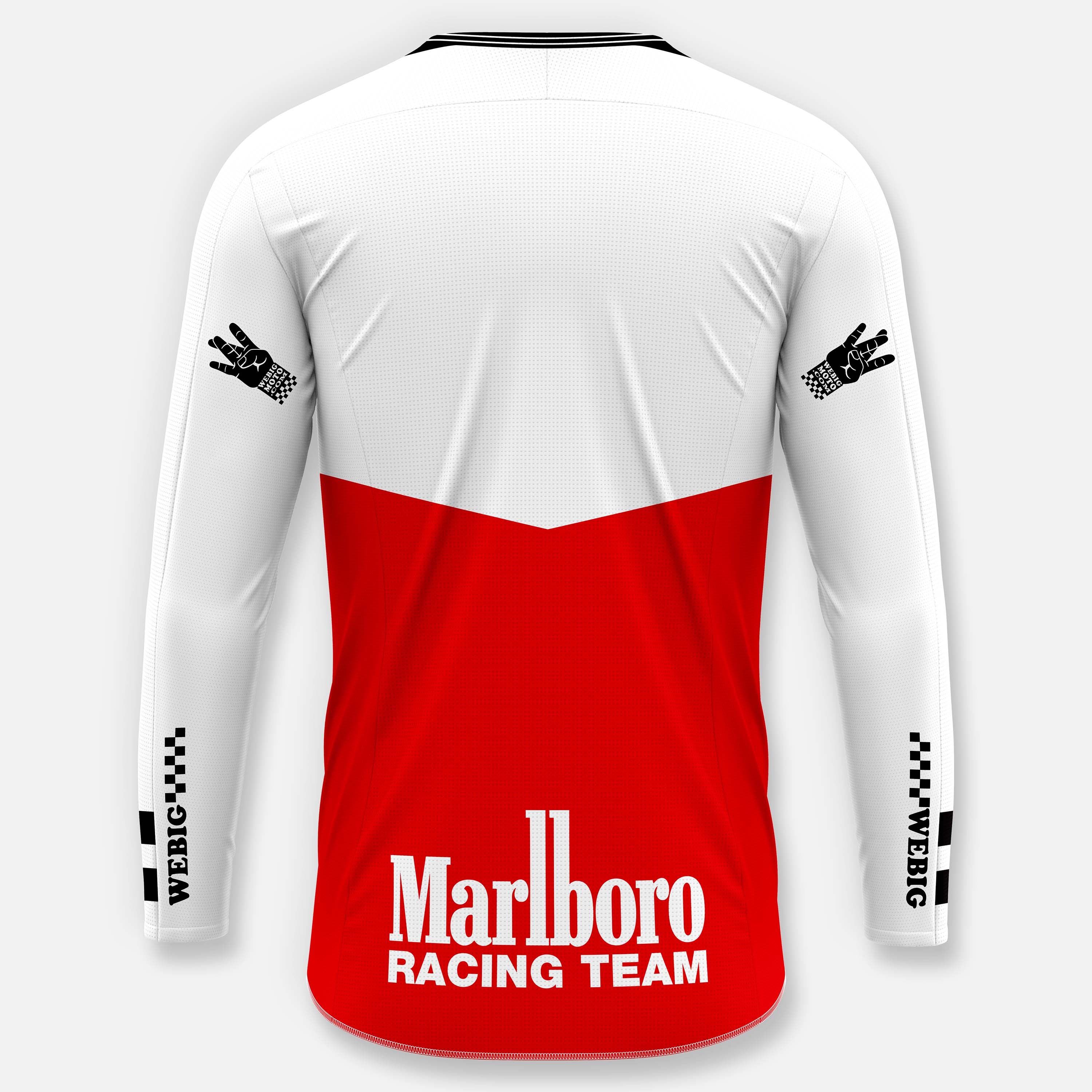 We are taking you back to 1974 when the Marlboro F1 team was dominating F1. You are witnessing the dawn of a new era in Motocross Racing Apparel. It was designed, and tested in direct collaboration with Jeff Emig. With hundreds of test rides and design tweaks.....we are so proud to deliver to you a Moto Jersey that is at the pinnacle of greatness. We believe that you will agree that it is the best Jersey in the History of the Motocross.