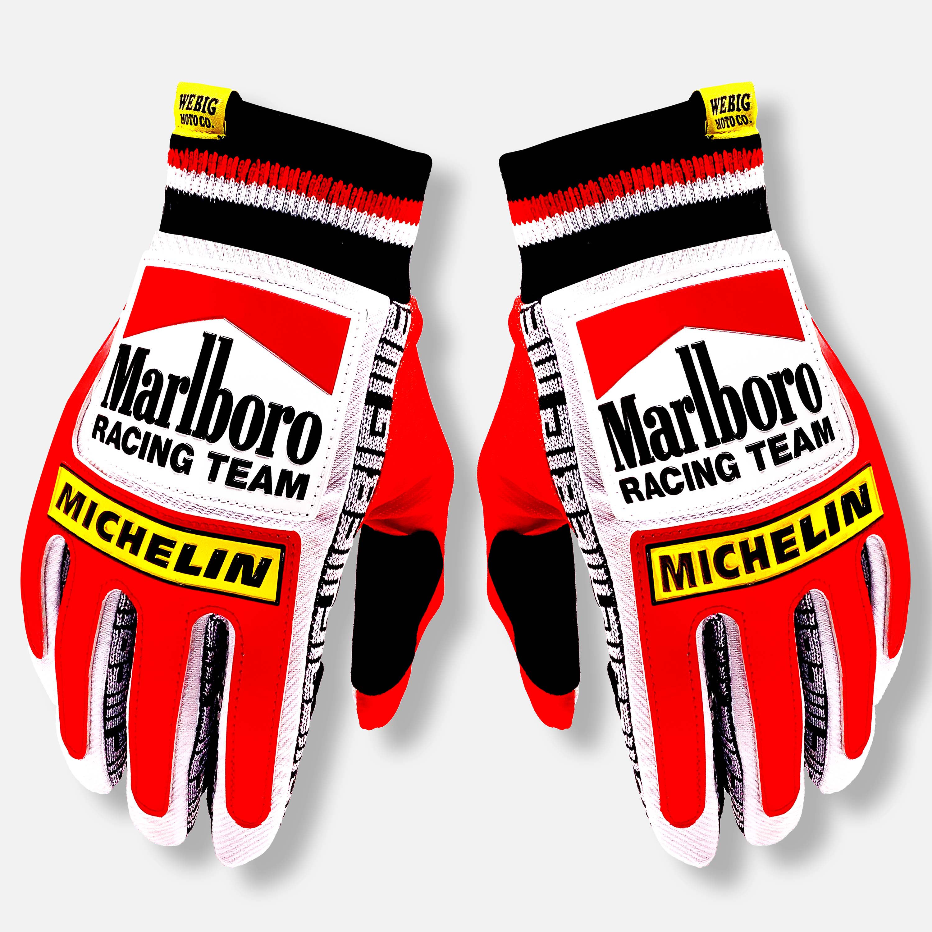 We are taking you back to 1974 when the Marlboro F1 team was totally dominating the world . You are witnessing the dawn of a new era in Motocross Racing Apparel. It was designed, and tested in direct collaboration with Jeff Emig. With hundreds of test rides and design tweaks.....we are so proud to deliver to you a Moto Glove that is at the pinnacle of greatness. We believe that you will agree that it is the best Vintage Moto gloves in the History of the Motocross.Â