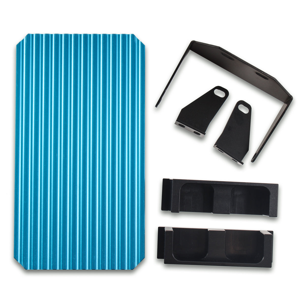 6061 Aluminum CNC machined ASI BAC4000 mounting kit for Sur Ron. The bracket fully protects the delicate front of the ASI controller from impacts. Mounts to existing holes on the frame with included aluminum mounting arms (no plastic spacers). All parts are type 2 anodized. Simple install and includes all mounting hardware.