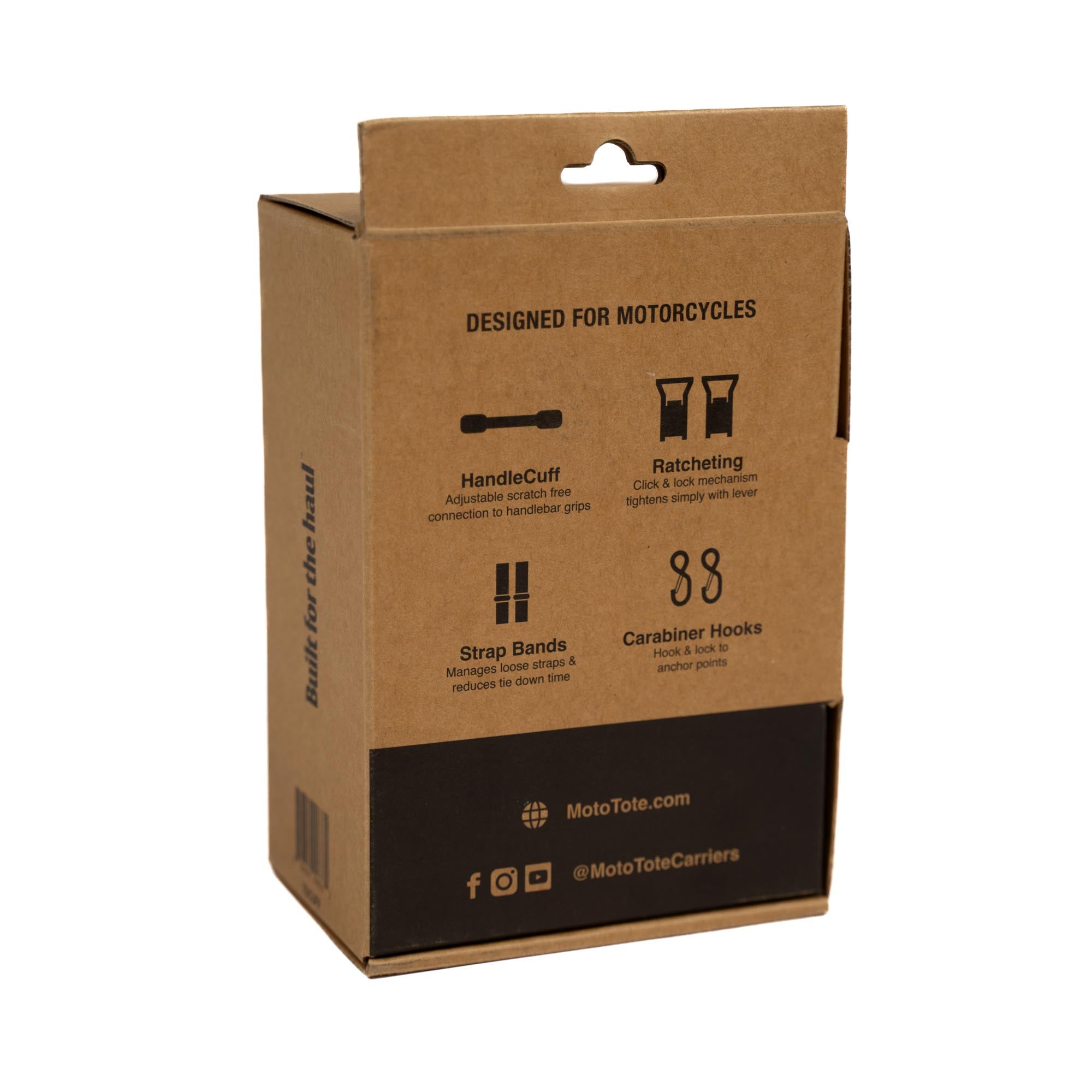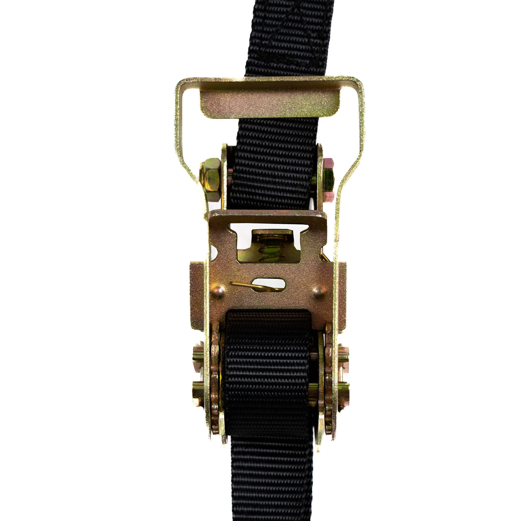 Handlebar cuff tie-down system with a ratcheting lever connects to handlebar grips up to 32" and has a 1,390 lb. working load limit.