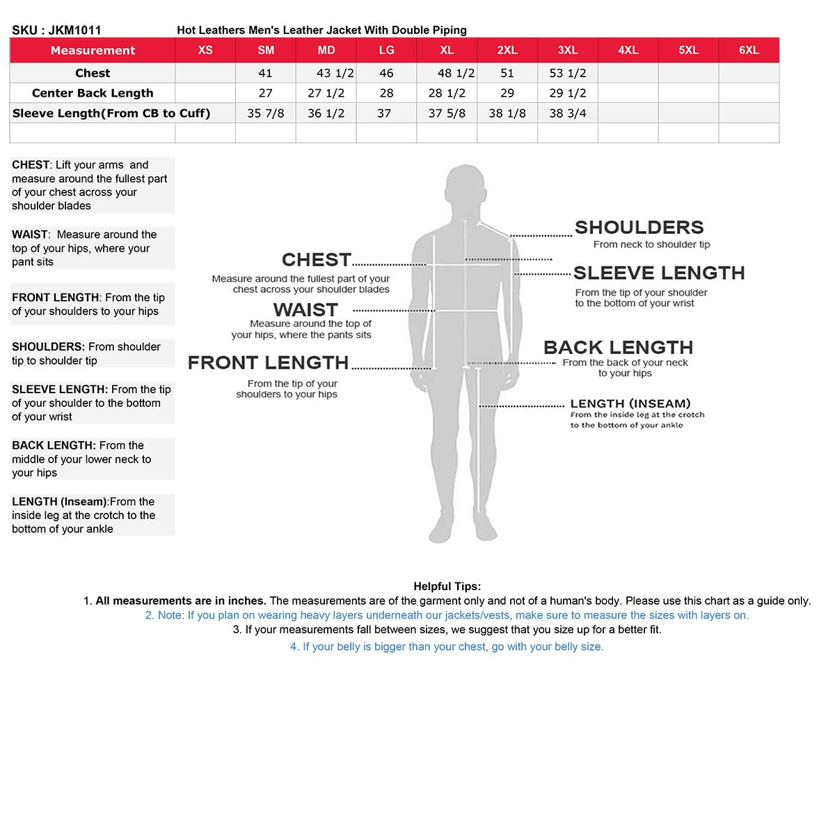 Hot Leathers JKM1011 Men's Black Biker Leather Motorcycle Jacket with Double Piping
