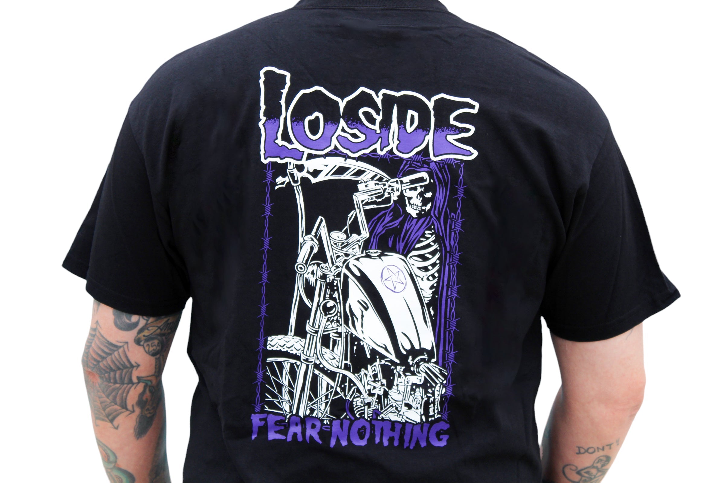The LoSide Fear Nothing Shirt is 100% cotton tee shirt, screen printed in Oceanside CA.