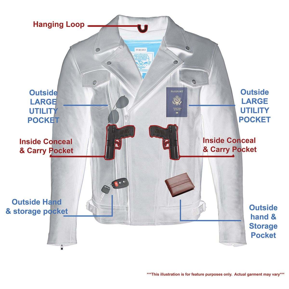 Milwaukee Leather LKM1760 Men's Black Leather Motorcycle Riders Jacket w/ Multi-Utility Pockets