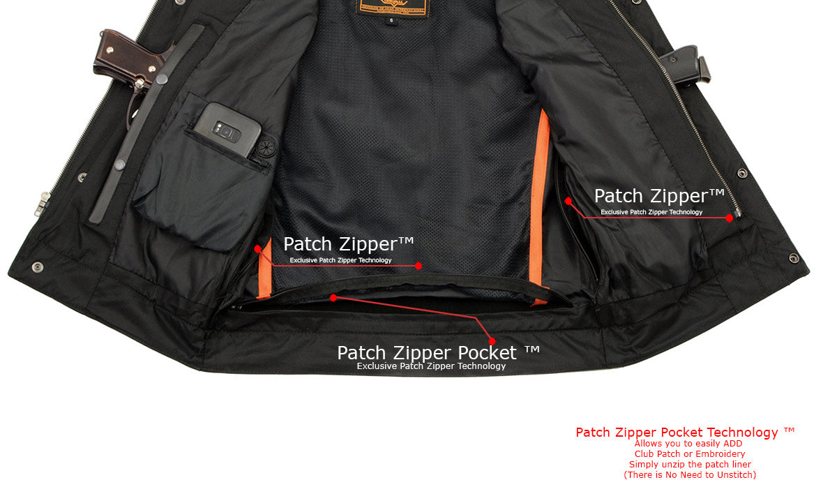 Milwaukee Leather LKM3713 Men's Black Leather Club Style Motorcycle Rider Vest W/ Dual Closure Zipper and Snaps
