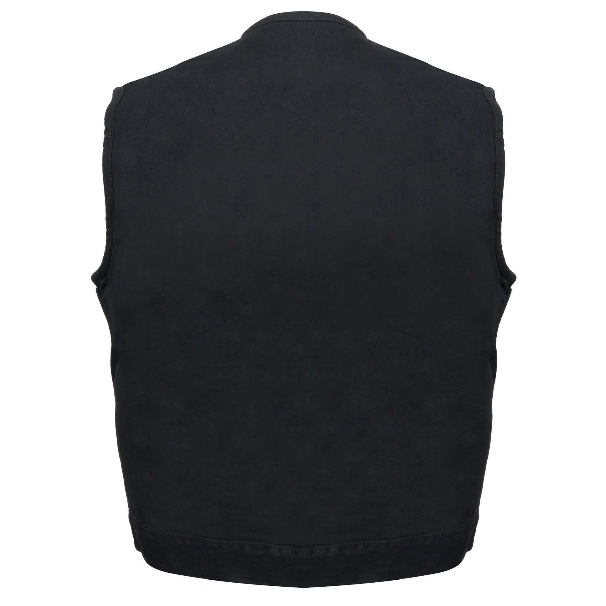 Milwaukee Leather MDM3001 Men's 'Covert' Black Denim Collarless Club Style Motorcycle Biker Vest w/ Dual Closure