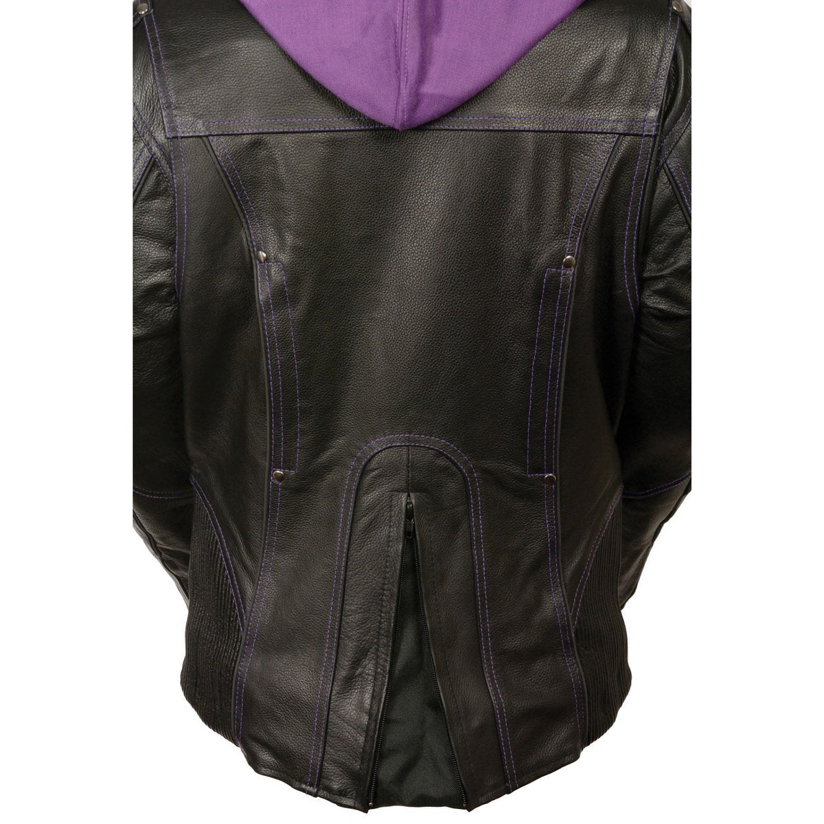 Milwaukee Leather ML2067 Women's 3/4 Black and Purple Leather Hoodie Jacket with Reflective Tribal Design