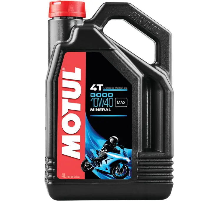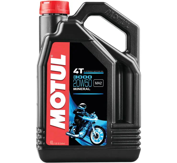 Motul 3000 4T Oil is a high-performing lubricant specifically designed to ensure optimal engine performance in 4-stroke motorcycles. Developed with a unique blend of advanced synthetic esters and other top-grade additives, this oil offers superior protection against wear and tear and delivers maximum engine power. Motul 3000 4T Oil is an entry level mineral lubricant that's designed for stop-and-go city riding to offer engine and gearbox protection without compromising reliability.