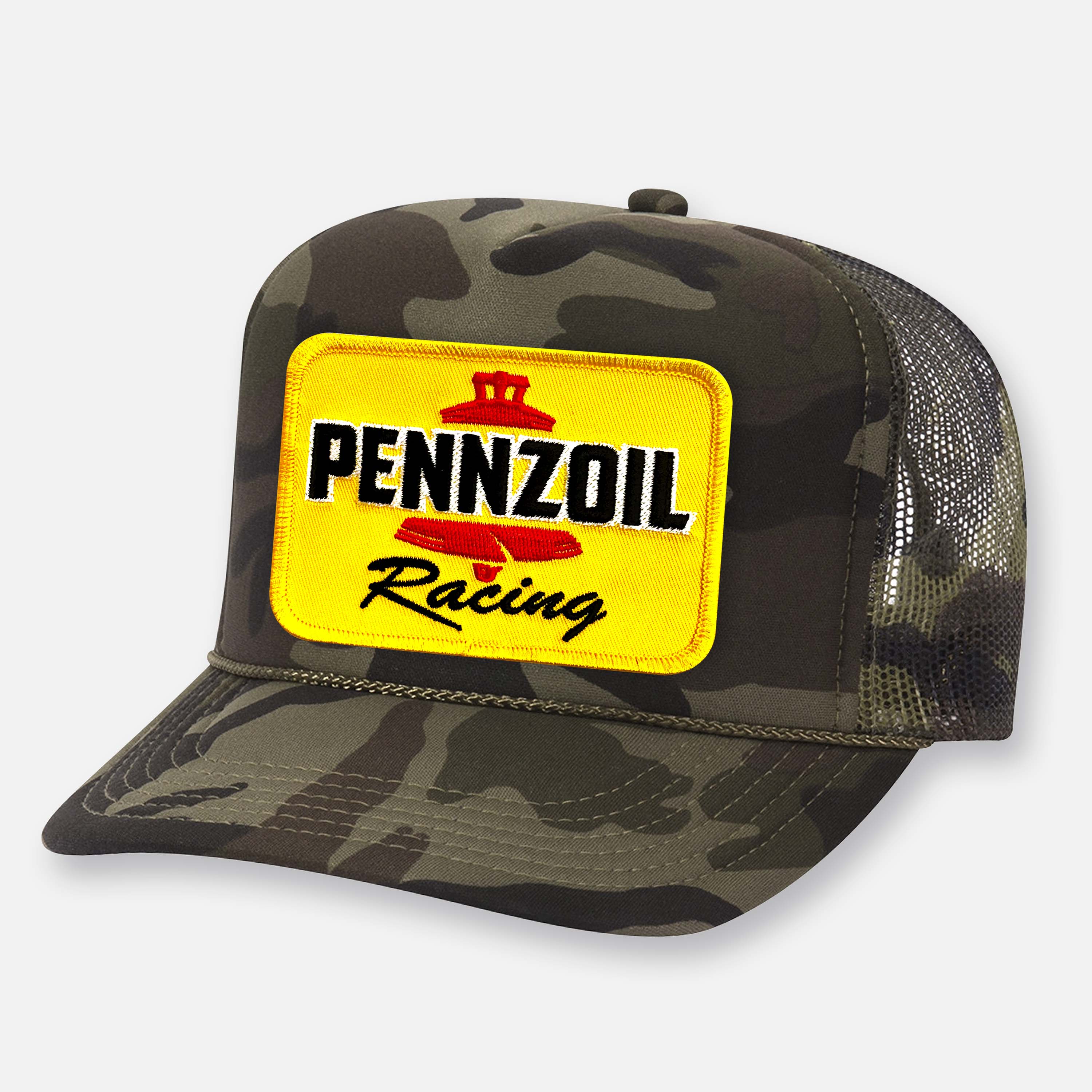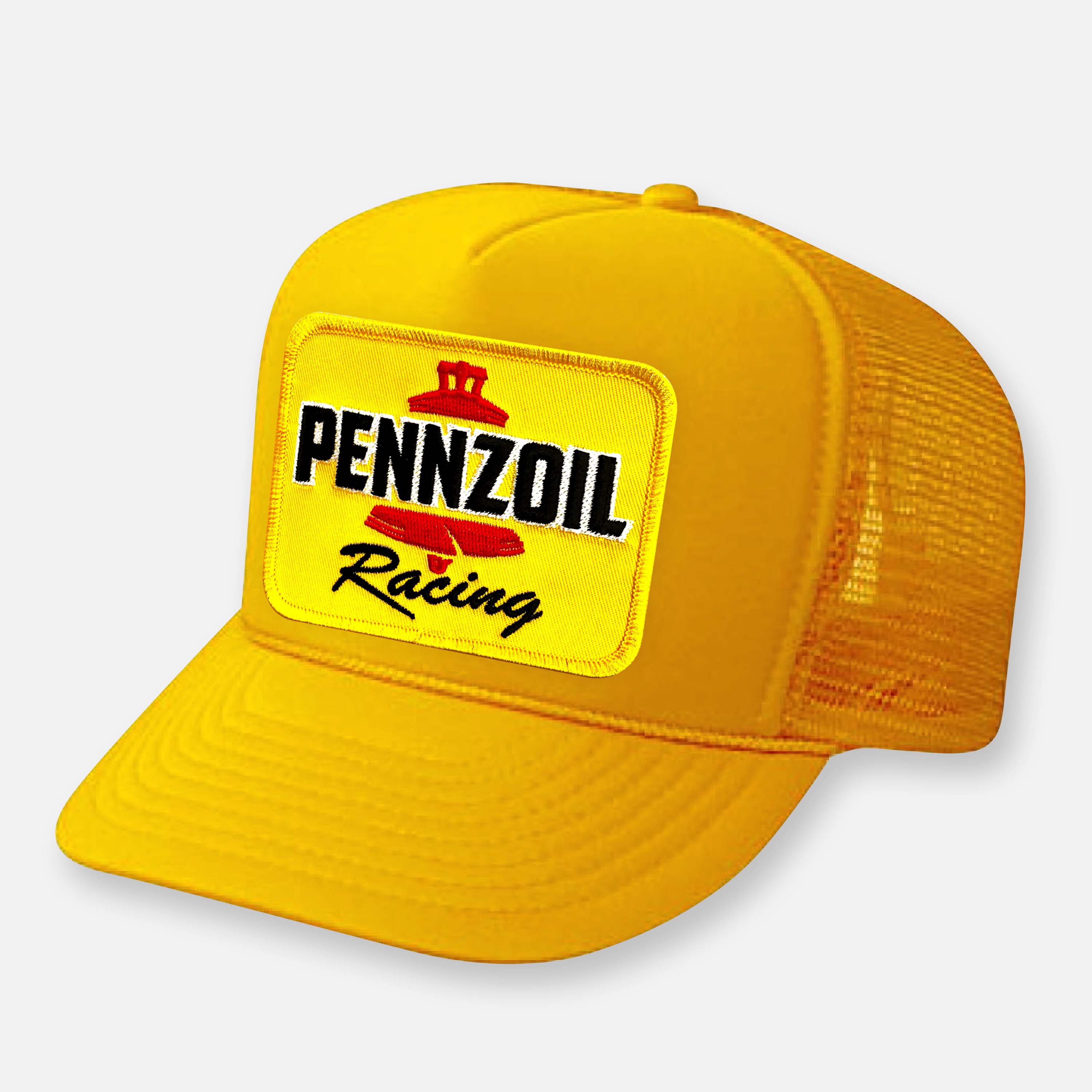 This epic new Pennzoil Race Team patch hat is part of our new Classic Trucker Hat Collection. This trucker hat features a big burly vintage Pennzoil Race Team patch sewn on the front panel. This hat is as old school as it gets!Â