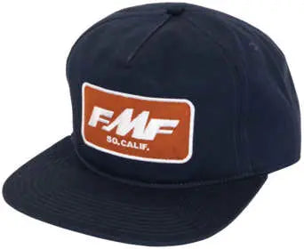 5 panel trucker snapback style hat with flat bill. Front patch. FMF woven label at snap closure.