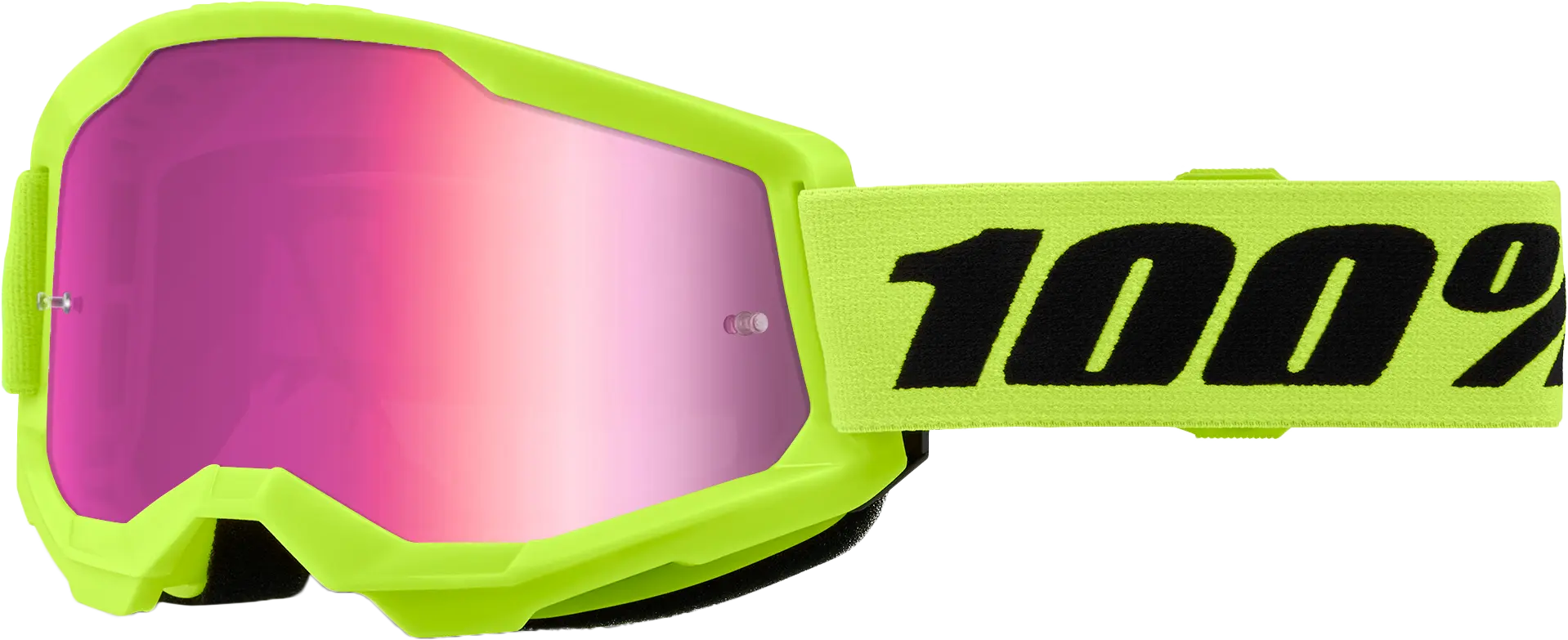 100% Strata 2 Youth Goggle Neon Yellow Mirror Pink Lens
