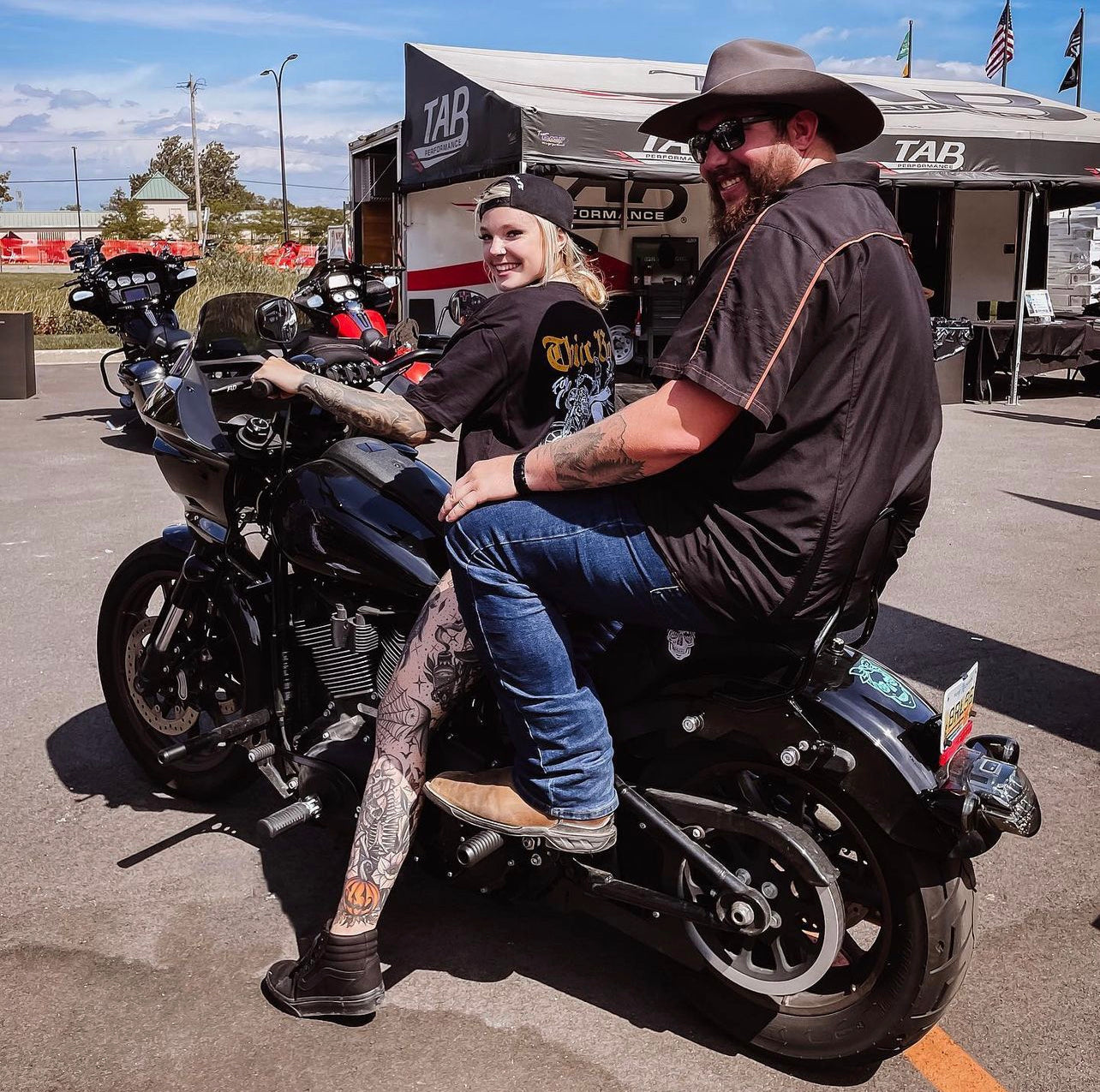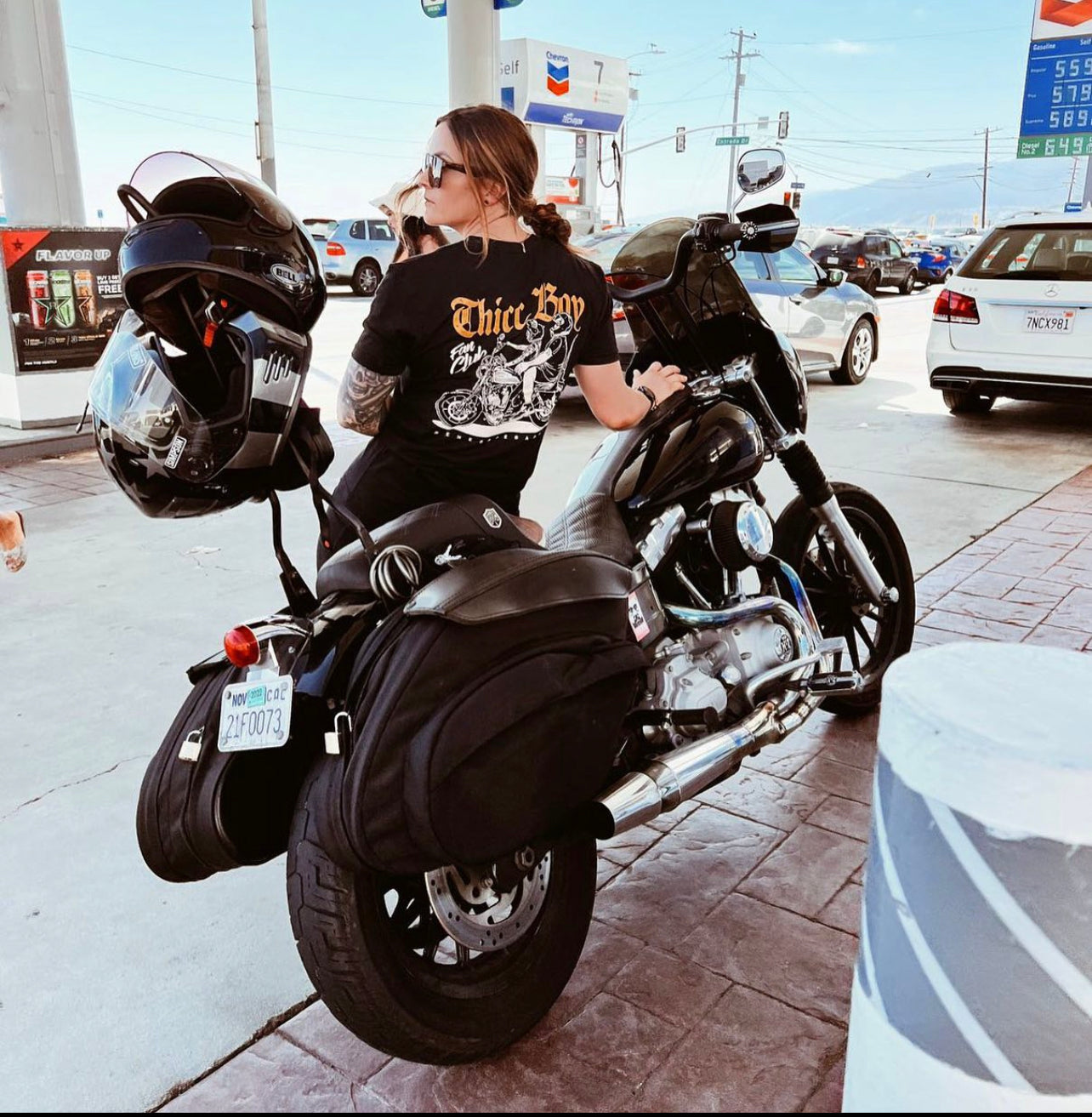 This funny tee features a petite female driving a sportster and a Thicc boy riding on back!