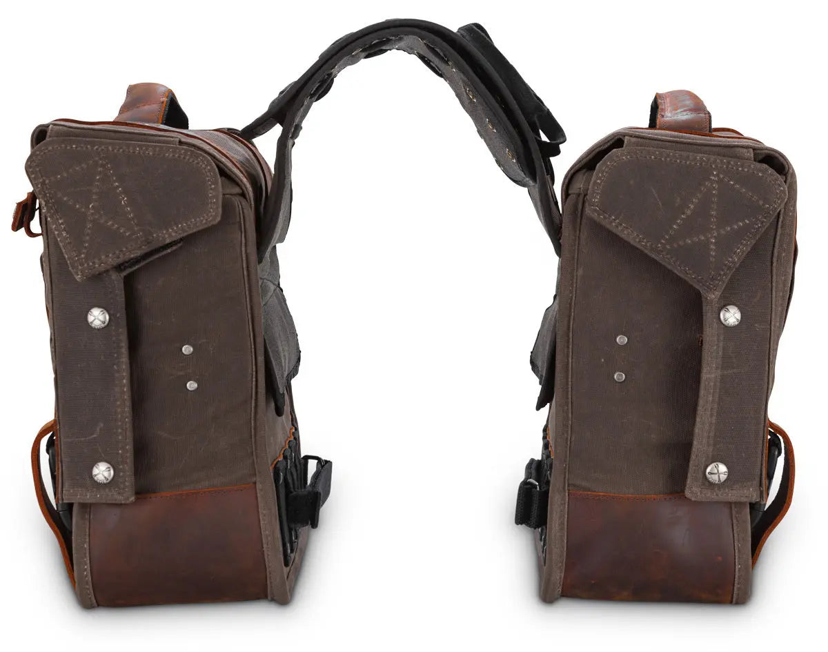 - Adjustable yoke center section that holds the two bags together.