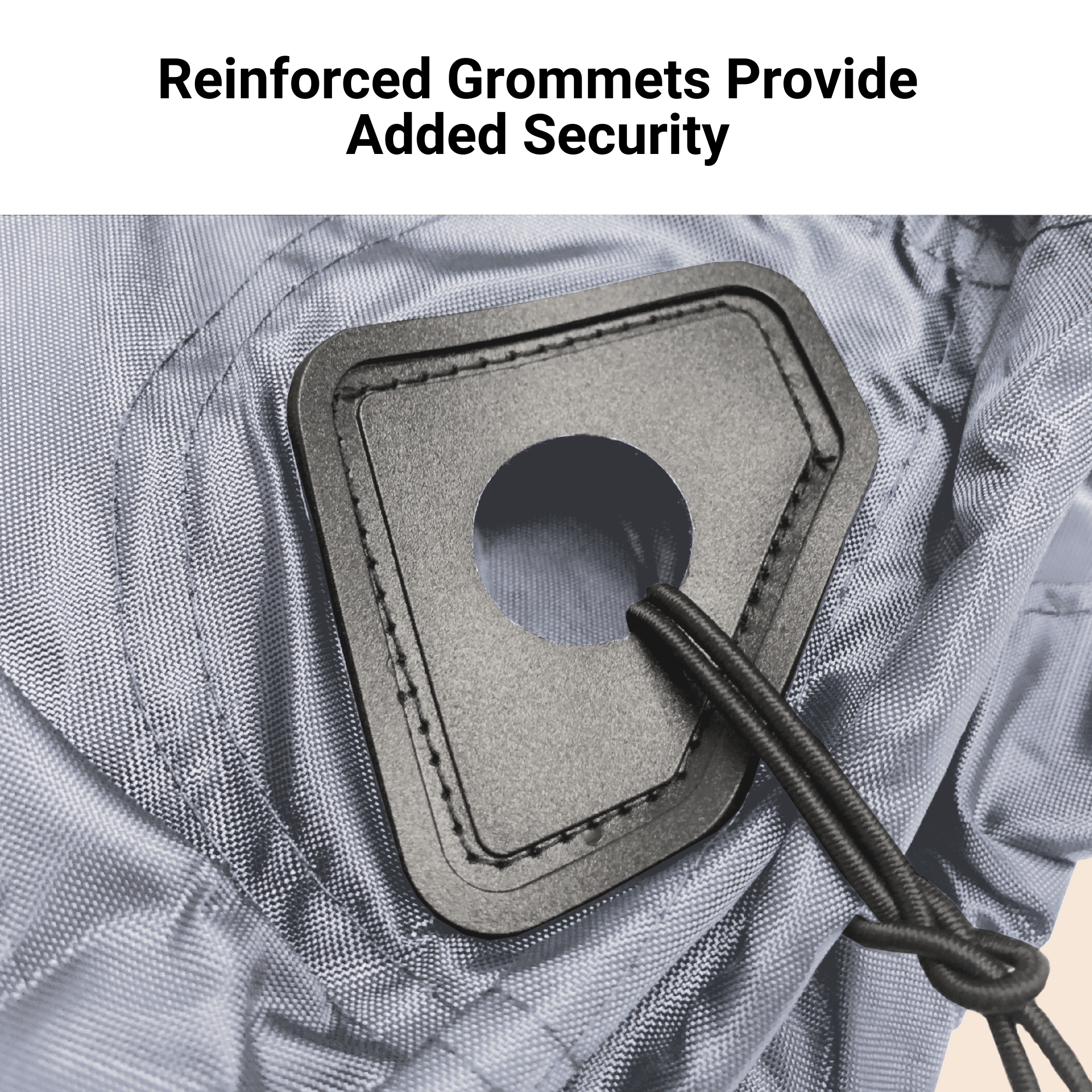 - All seams are top stitched with heavy duty nylon thread. 8 Heavy duty grommets allow cover to be locked to your quad for ensure security