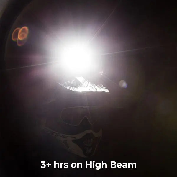 - Extended Battery Life – Our high capacity battery allows you to run on high beam for 3+ hours. Low beam will give you 12+ hours.