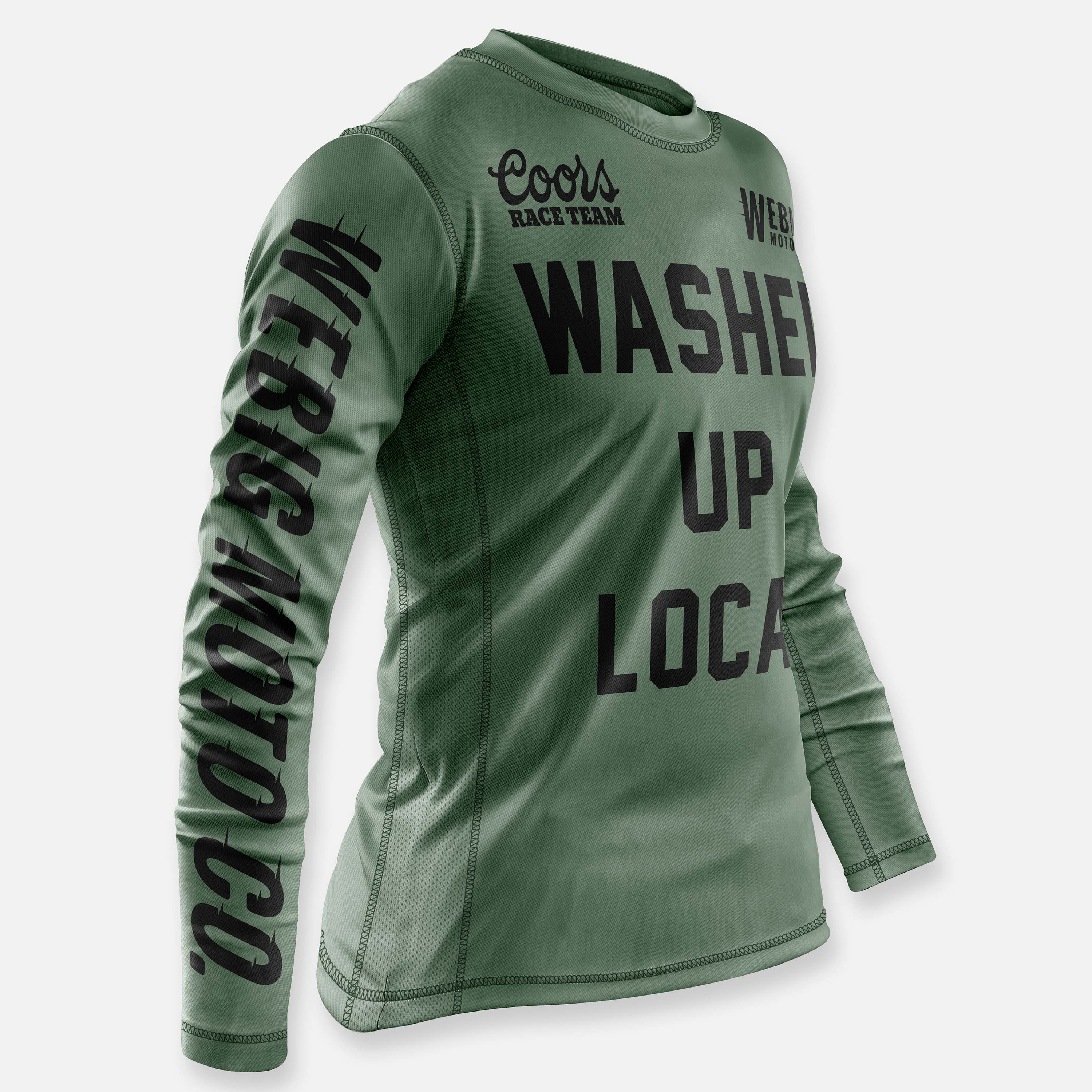If you want your name & number printed on the back...then you will need to purchase a Jersey ID Kit. Our Jersey ID Kits can be purchased on the bottom of the Motocross Page on the website. Please note....if you order a Jersey ID Kit for this Washed Up Local Jersey your name & number will be printed in BLACK